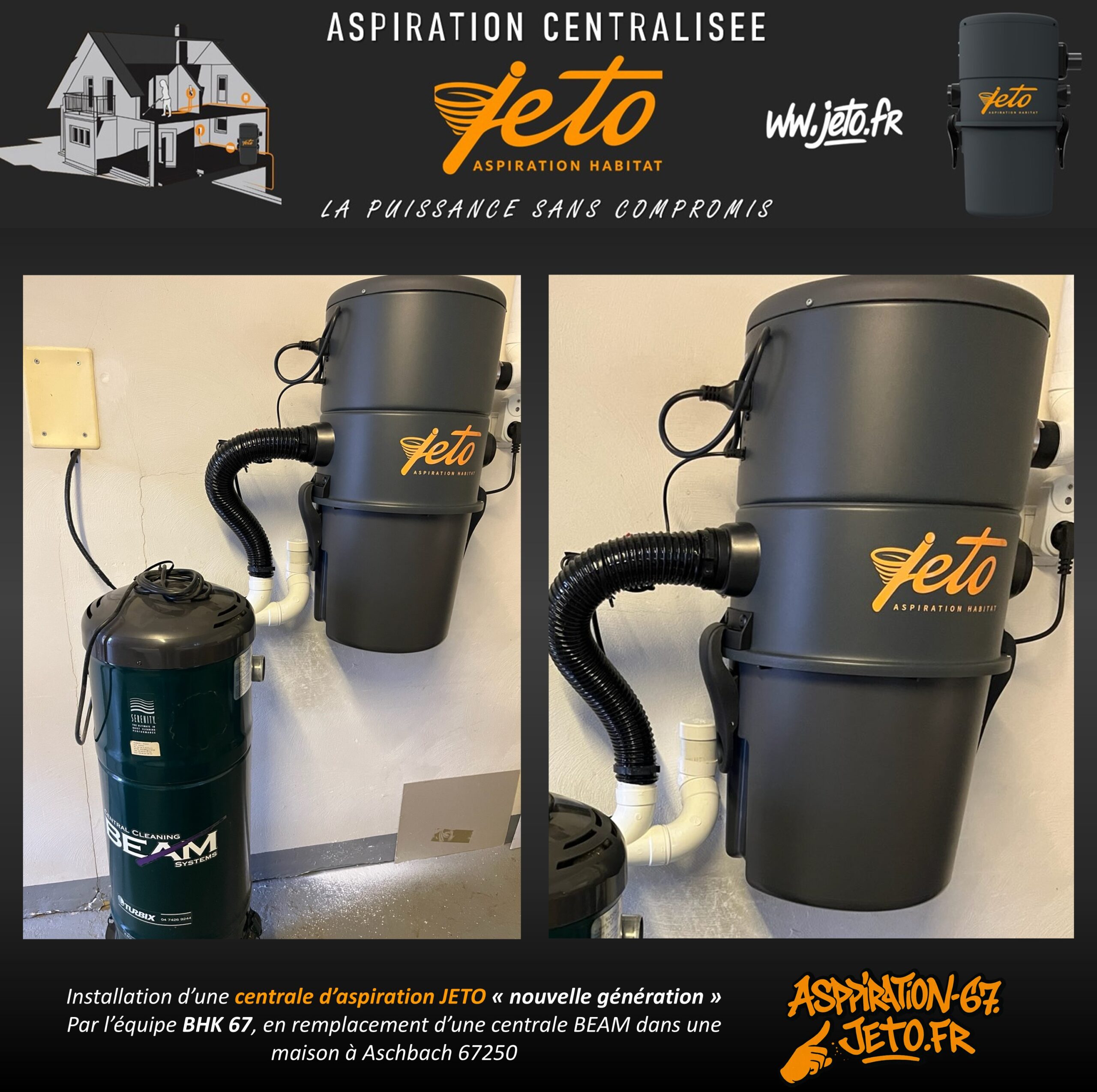 C’est à Aschbach 67250, dans le Bas-Rhin en Alsace, qu’une maison équipée depuis plusieurs années d’une centrale d’aspiration BEAM a choisi de franchir un nouveau cap : passer à la puissance et au confort de la nouvelle centrale JETO.