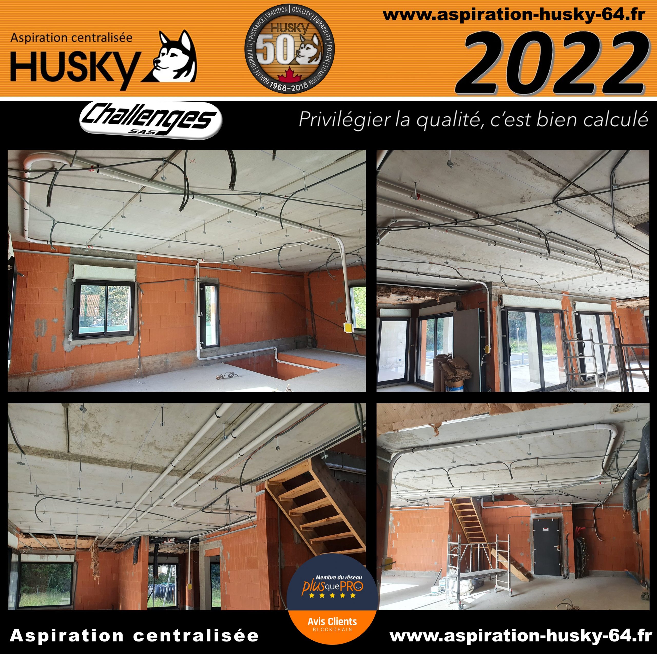 Une réalisation de la société CHALLENGES dans une maison en construction située à Narrosse 40180 dans le département des Landes, région Nouvelle-Aquitaine. Installation d’un réseau PVC qui alimente 3 prises en flexible rétractable RetraFlex avec un flexible de 18 mètres et 2 de 12 mètres ainsi qu’une prise cuisine « ramasse miettes ». L’ensemble de ce réseau PVC sera raccordé sur un modèle Husky ÉVOLUTION.