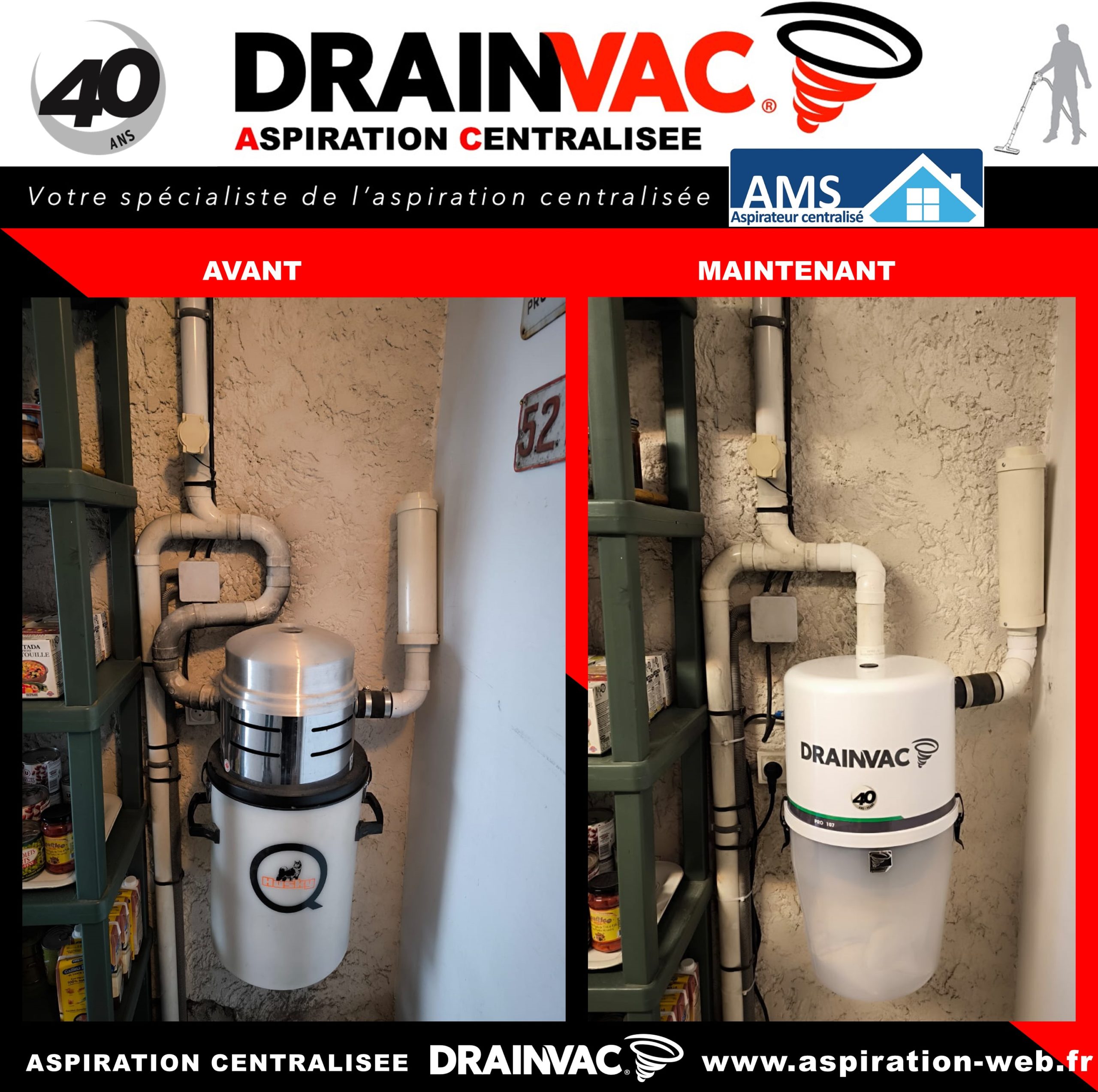 Intervention de la société AMS dans une maison existante située dans le département du Vaucluse en région Provence-Alpes-Côte d’Azur. Cette maison état équipé d’un ancien système d’aspiration centralisée sur un réseau PVC d’environ 20 mètres qui alimente 4 prises d’aspiration classiques. Les clients ont opté, après évaluation approfondie des besoins spécifiques en matière d’aspiration centralisée, pour le remplacement du groupe moteur par un modèle DRAINVAC PROE107.
