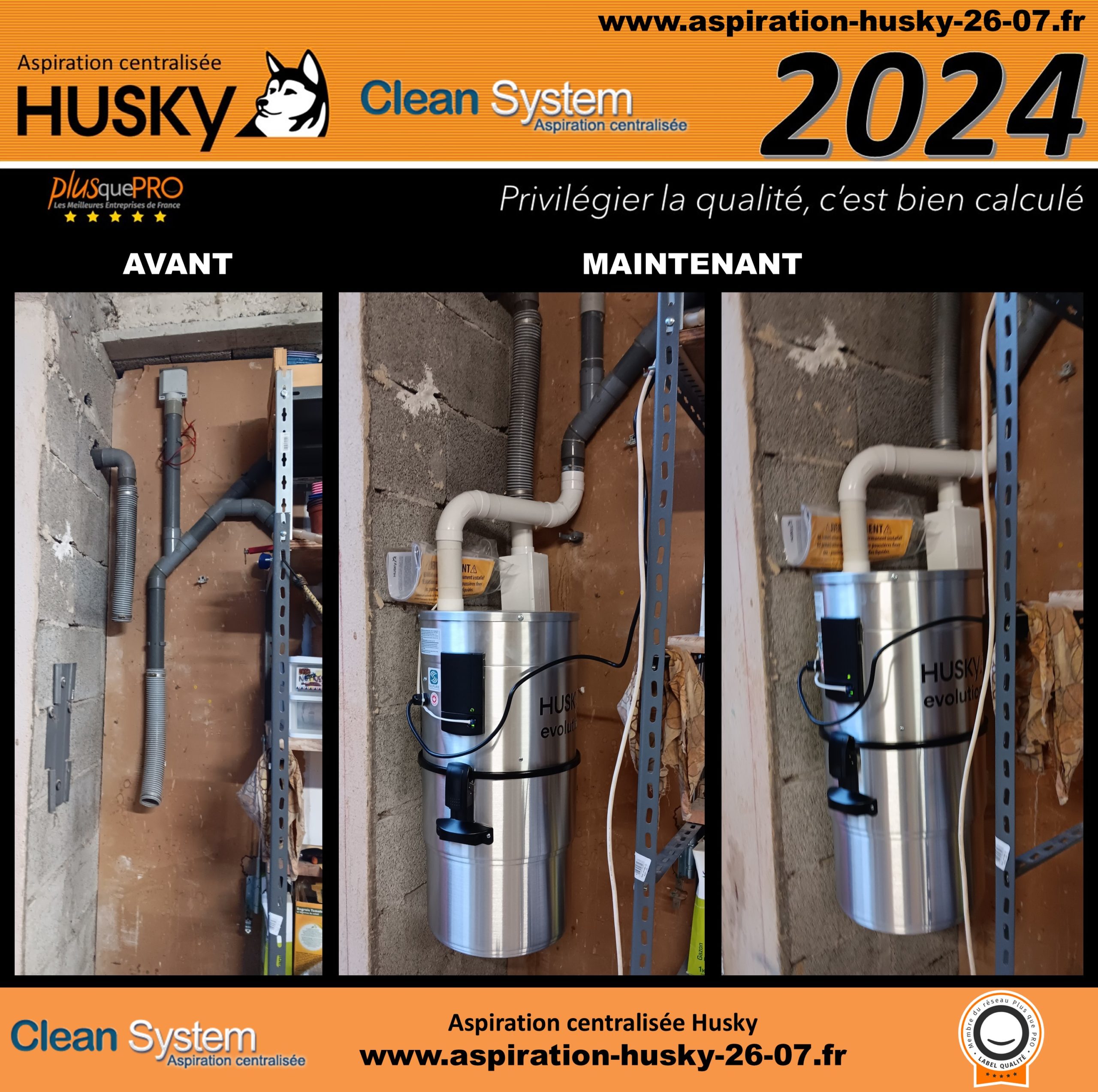 Intervention de la société Clean-System dans une maison existante située à Bourg-lès-Valence 26500 dans le département de la Drôme, en région d’Auvergne-Rhône-Alpes. Cette maison était équipée d’un système d’aspiration centralisée sur un réseau de conduits en PVC qui alimente plusieurs prises d’aspiration classiques. Les clients ont opté pour le remplacement de leur centrale d’aspiration par un modèle HUSKY ÉVOLUTION, un système hybride performant équipé d’un moteur by-pass. Celui-ci bénéficie d’un démarrage et arrêt progressif, d’une puissance d’aspiration de 3977 mm de dépression, d’une diode de contrôle, ainsi que d’une cuve de 34 litres avec filtre lavable et traité SILPURE.