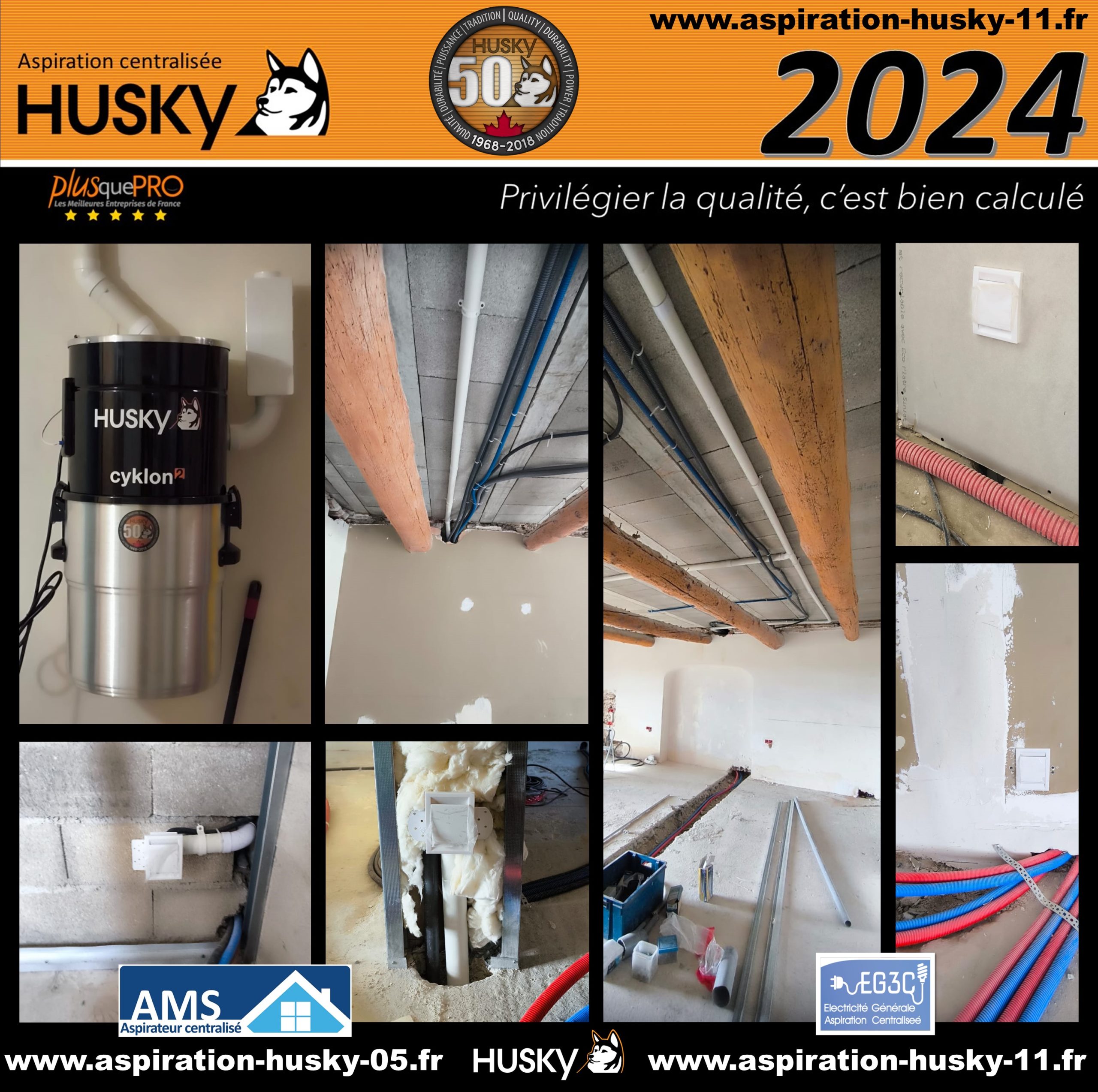 Une réalisation de la société AMS avec le soutien de la société EG3C pour la partie installation, dans une maison de 300 M² en rénovation située à Mallemort 13370 dans le département des Bouches-du-Rhône en région Provence-Alpes-Côte d’Azur. Installation d’un réseau PVC d’environ 70 mètres qui alimente 6 prises d’aspiration classiques. L’ensemble de ce réseau a été raccordé sur un modèle HUSKY CYKLON².