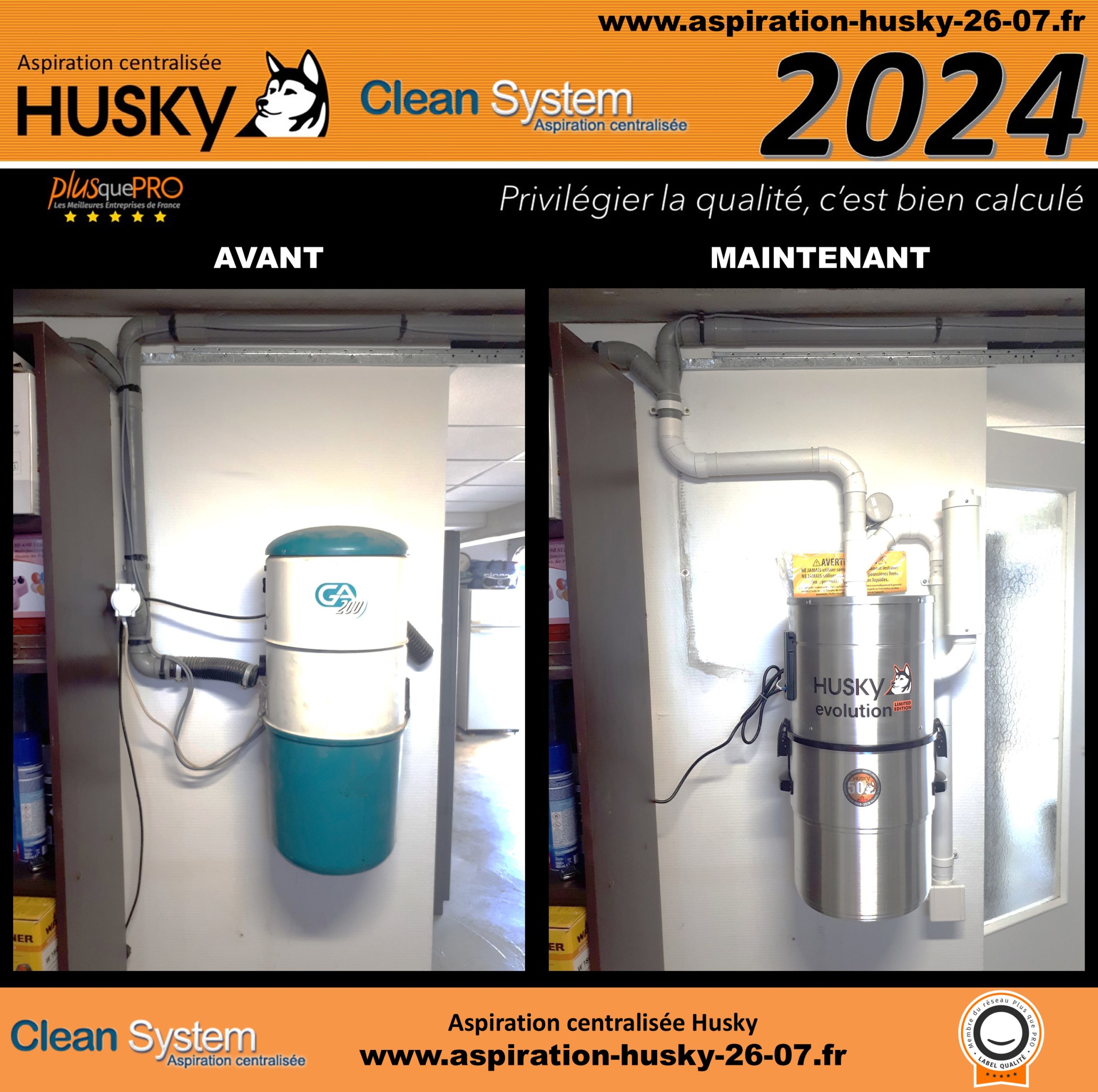 Cette maison était équipé d’un système d’aspiration centralisée avec la marque Générale d’Aspiration sur un réseau PVC qui alimente plusieurs prises d’aspiration classiques. Les clients ont opté pour le remplacement de cette centrale par un modèle HUSKY ÉVOLUTION, un système hybride performant équipé d’un moteur by-pass. Celui-ci bénéficie d’un démarrage et arrêt progressif, d’une puissance d’aspiration de 3977 mm de dépression, d’une diode de contrôle, ainsi que d’une cuve de 34 litres avec filtre lavable et traité SILPURE.
