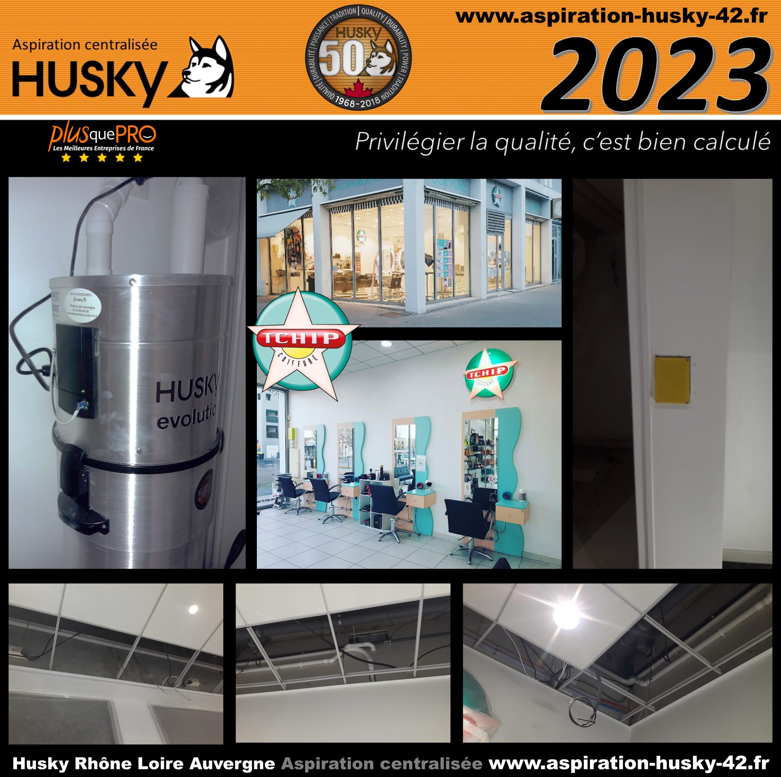 Une réalisation de la société Husky Rhône Loire Auvergne dans le salon de coiffure EMITIF TCHIP au 227 Avenue Berthelot à LYON 69008 dans le département du Rhône, région Auvergne-Rhône-Alpes. La responsable du salon de coiffure EMITIF TCHIP a profité « du coup de neuf » complet du salon pour faire l’installation d’un réseau PVC qui alimente 1 prise d’aspiration pour système de flexible rétractable de 12 mètres, l’ensemble, raccordé sur un modèle Husky ÉVOLUTION, système hybride, équipé d’un moteur by-pass avec démarrage et arrêt temporisé et d’une puissance d’aspiration de 3977 mm de dépression. Filtre lavable en machine à laver et traité SILPURE, capacité de cuve de 34 litres, diodes de contrôle…