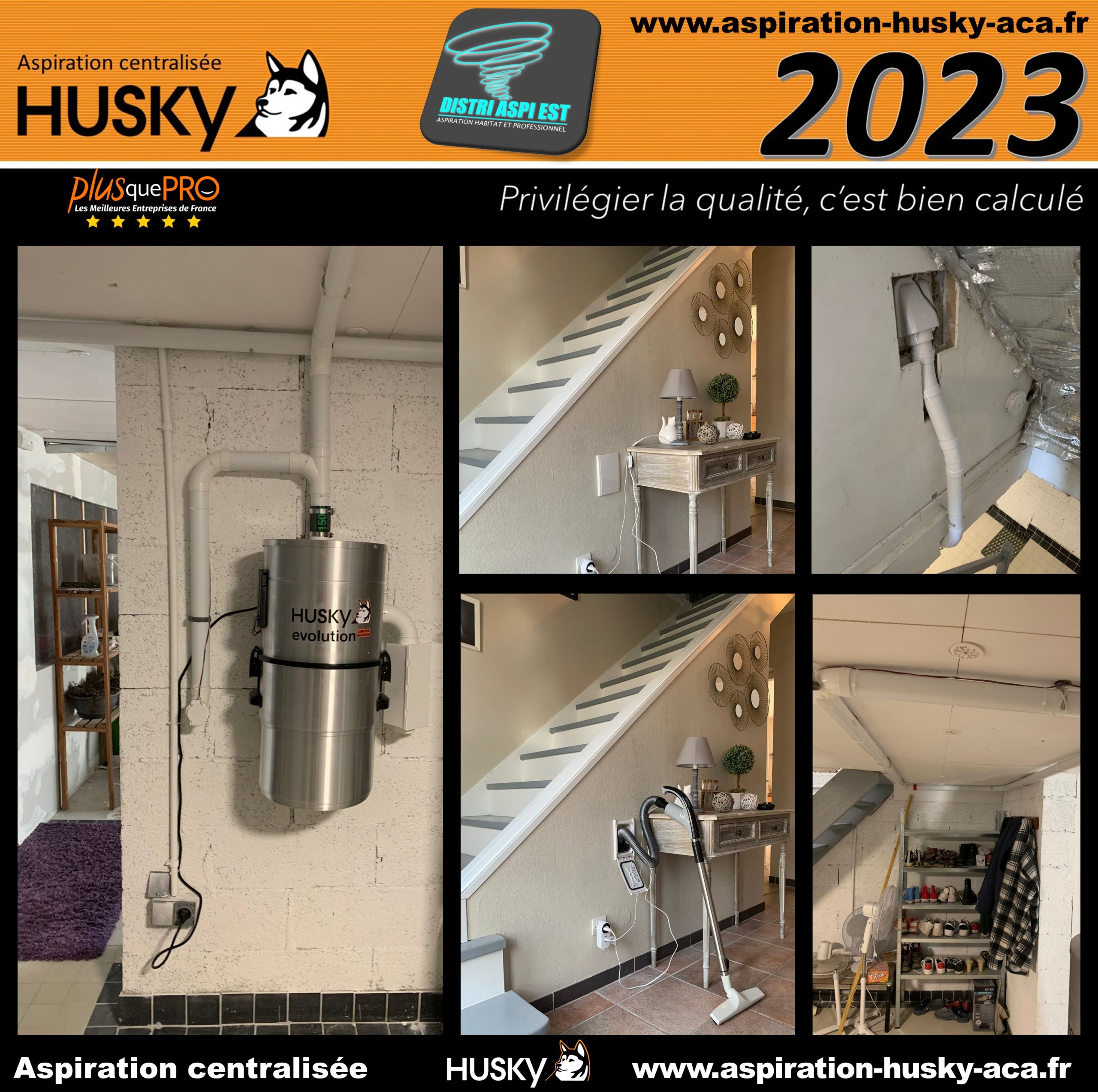 Une réalisation de la société HUSKY A.C.A dans une maison existante située à Battenheim 68390 dans le département du Haut-Rhin en Alsace, région Grand-Est. Installation d’un réseau PVC qui alimente 1 prise pour flexible rétractable de 15 mètres et 1 prise d’aspiration classique. L’ensemble de ce réseau a été raccordé sur un modèle Husky ÉVOLUTION, système  hybride équipé d’un filtre lavable en machine à laver et traité SILPURE, diode de contrôle pour un minimum d’informations aux utilisateurs, cuve de 34 litres, moteur avec démarrage et arrêt temporisé, d’une puissance d’aspiration de 39772 mm de dépression (39 KPA), modèle couvert d’une garantie de 25 ans par le manufacturier Canadien des produits Husky.