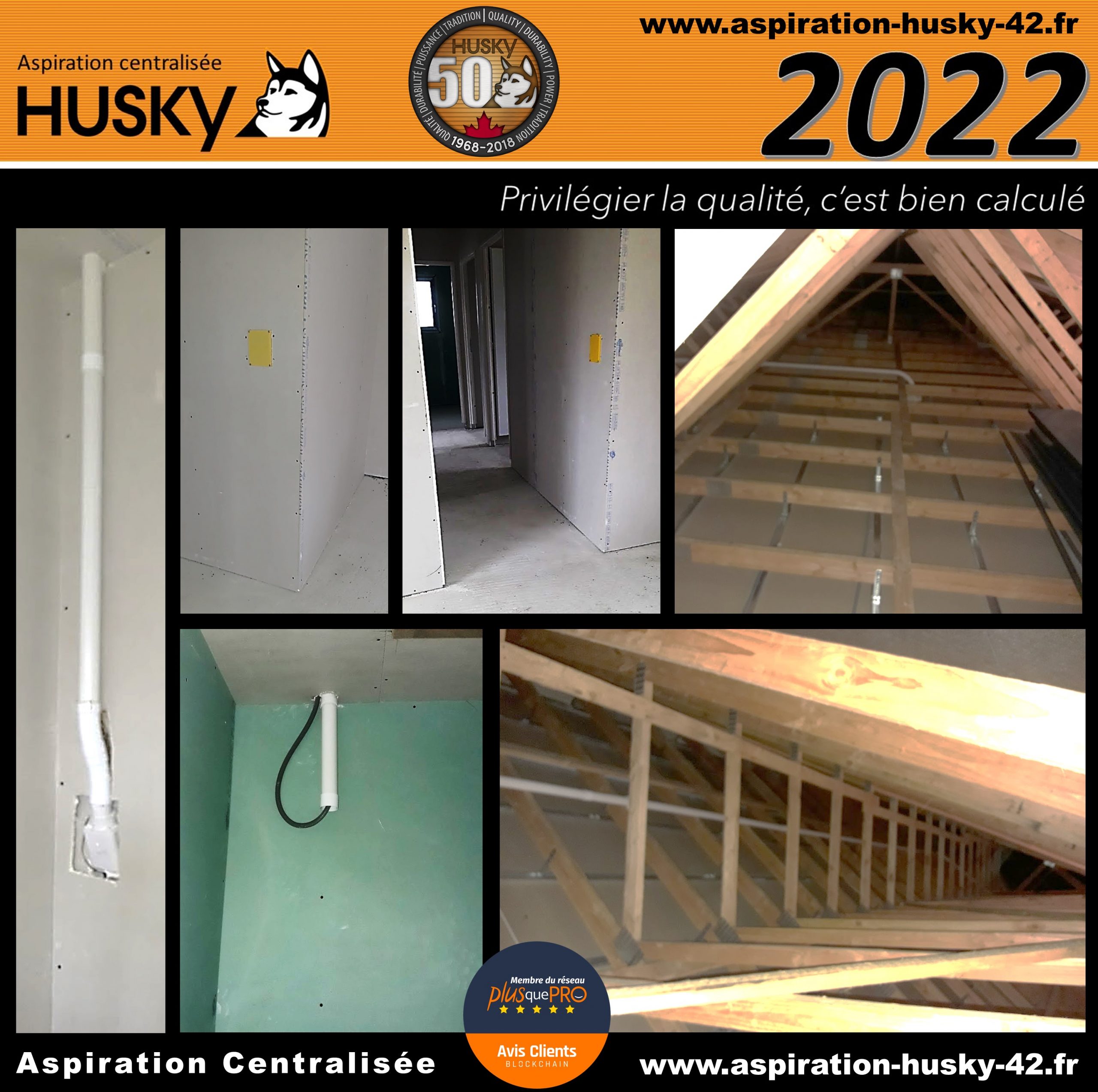 L’ensemble de ce réseau a été raccordé sur un modèle Husky ÉVOLUTION, système hybride, équipé d’un moteur by-pass avec démarrage et arrêt temporisé et d’une puissance d’aspiration de 3977 mm de dépression. Filtre lavable en machine à laver et traité SILPURE, capacité de cuve de 34 litres, diodes de contrôle, tout en aluminium brossé et couvert d’une garantie de 25 ans par le manufacturier Canadien des produits Husky.