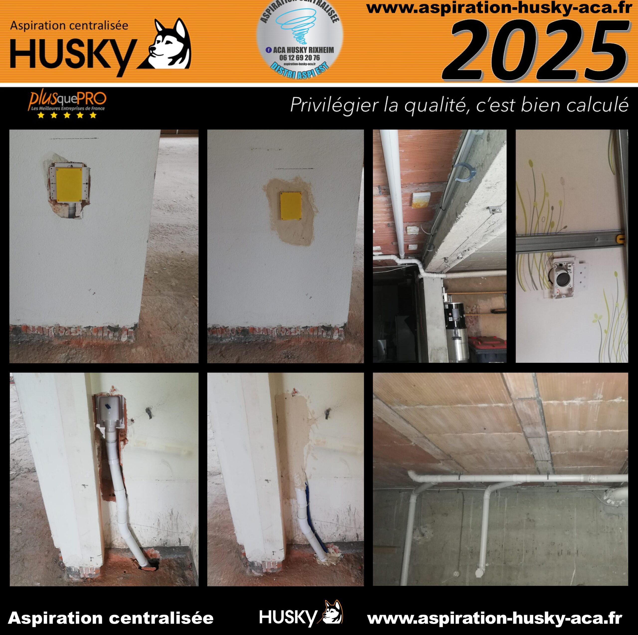 Cette habitation était déjà équipée d’un système d’aspiration centralisée Husky, installé depuis plusieurs années sur un réseau PVC alimentant des prises d’aspiration classiques.