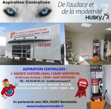 Retrouvez l’aspiration centralisée avec les agences CASTORS de l’Ouest et le modèle HUSKY CASTORS :...