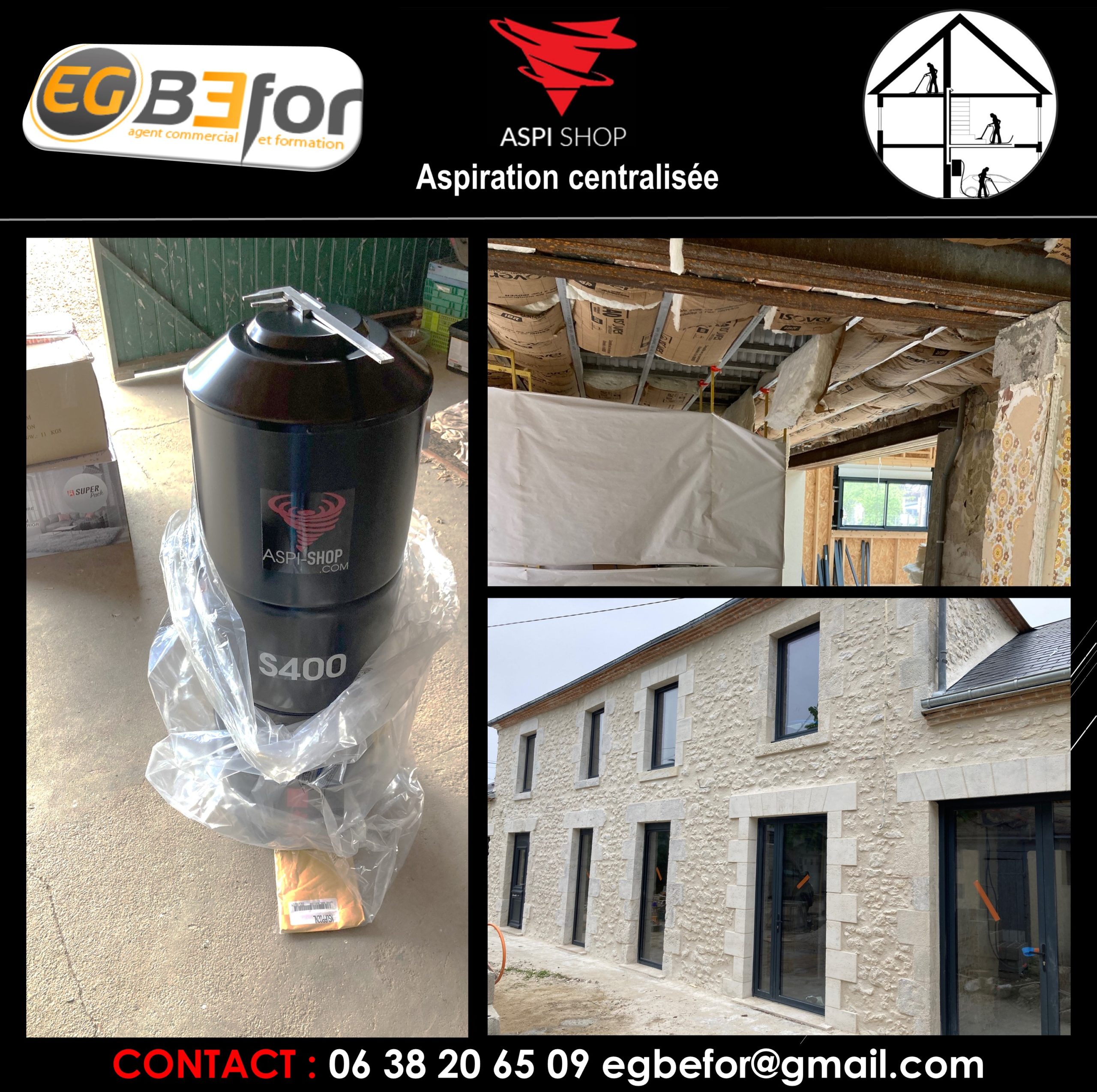Intervention de la société EG BEFOR dans une maison située à Avallon 89200 dans le département de l’Yonne, région Bourgogne-Franche-Comté. Encore quelques jours de patience pour que ce modèle ASPI SHOP S400 rejoigne son nid douillet dans cette superbe habitation en rénovation. Les clients ont opté pour un réseau d’aspiration classiques avec 5 prises d’aspiration traditionnelles ainsi que deux flexibles avec mise en route marche/arrêt sur la poignée. Le modèle ASPI SHOP S400, système hybride équipé de 2 moteurs, puissance d’aspiration de 4318 mm de dépression (43 KPA), 695 Air watts, 2 entrées d’air, filtre HEPA avec décolmatage automatique !