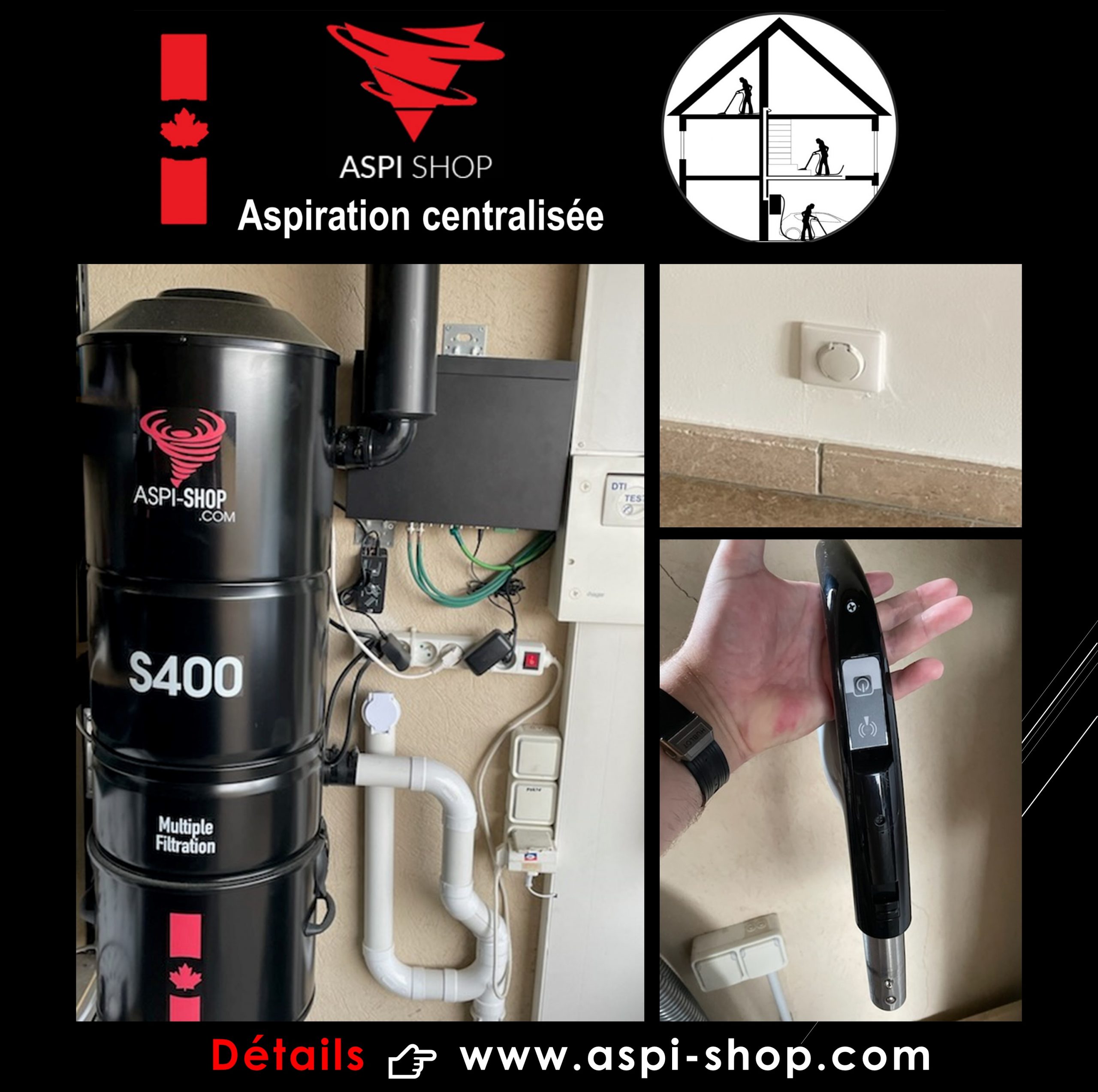 Les clients ont opté pour le remplacement de leur centrale d’aspiration par un modèle ASPI SHOP S400, système hybride, 2 moteurs d’une puissance d’aspiration de 4318 mm de dépression (43 KPA), 695 Air watts, capacité de cuve de 23 litres, 2 entrées d’air, filtre HEPA avec décolmatage automatique, modèle garantie 10 ans.