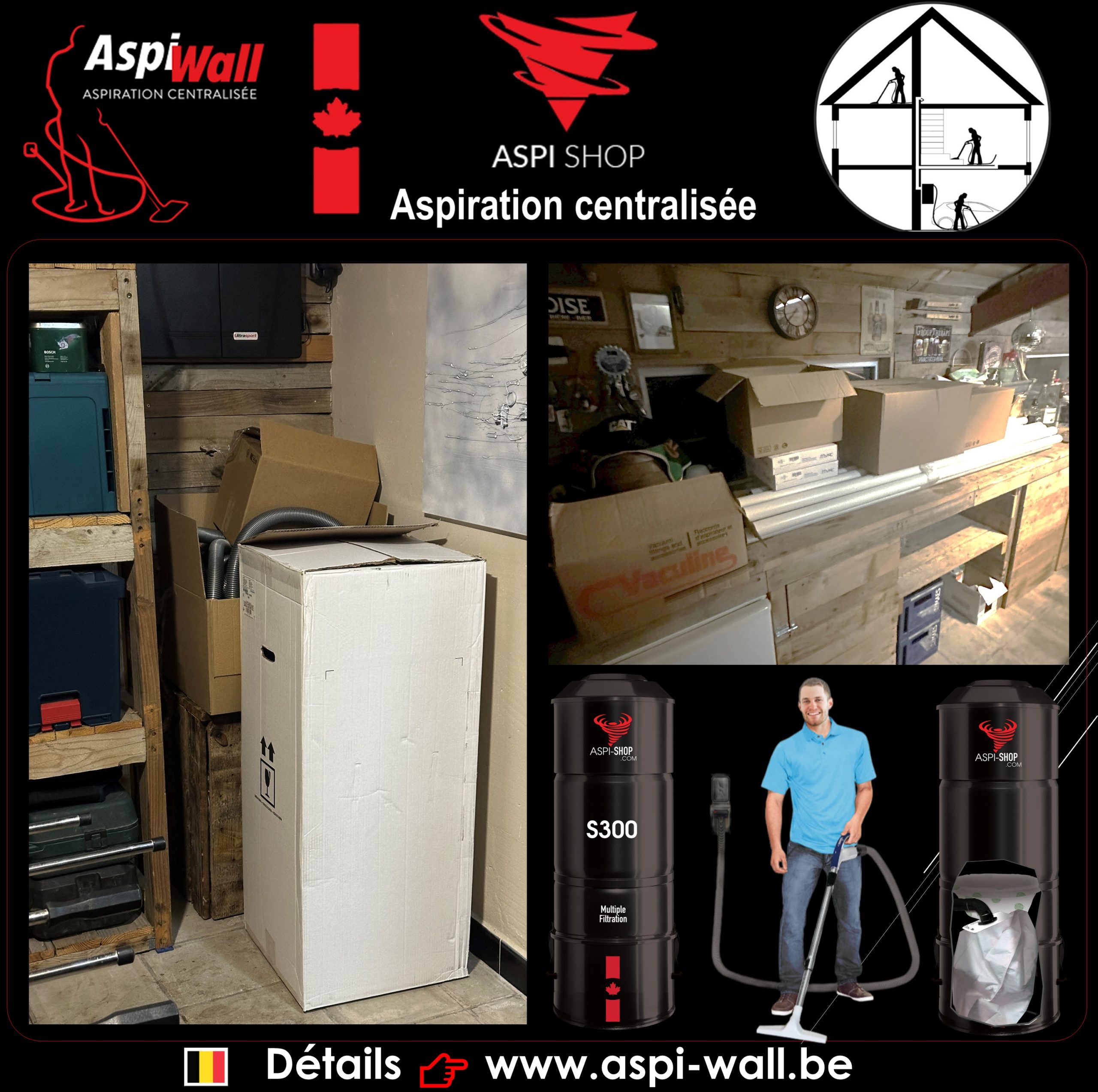 Livraison d’un pack aspiration centralisée ASPI SHOP effectuée par la société Aspi-Wall, dans une maison existante située à Sambreville 5060 en Wallonie dans la province de Namur en Belgique. L’installation sera réalisée par les clients propriétaires de cette habitation et, comprendra un réseau PVC qui alimentera 2 prises d’aspiration pour système de flexibles rétractables de 15 mètres. L’ensemble de ce réseau sera raccordé sur une centrale d’aspiration ASPI-SHOP S300. Le modèle ASPI-SHOP S300 est un système hybride, équipé d’un d’une puissance d’aspiration de 3998 mm de dépression (39 KPA), 655 Air watts, capacité de cuve de 23 litres, 2 entrées d’air, filtre HEPA avec décolmatage automatique, modèle garantie 10 ans.