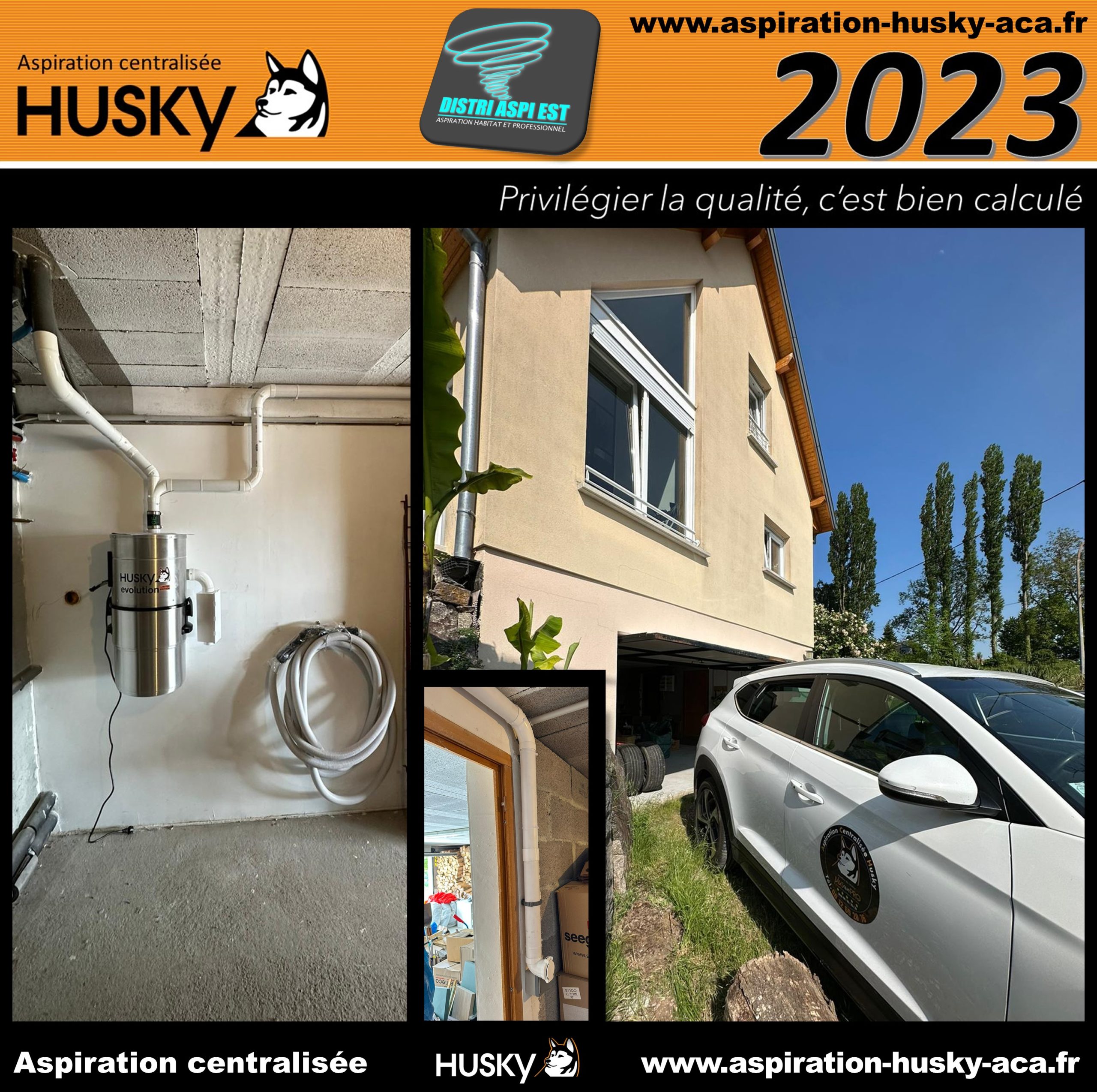 Intervention de la société HUSKY A.C.A dans une maison existante située à Jettingen 68130 dans le département du Haut-Rhin en Alsace, région Grand-Est. Cette maison avait été pré-équipée lors de sa construction il y a 15 ans, le réseau PVC qui alimente plusieurs prises d’aspiration classiques était donc en place, les clients ont opté pour le raccordement d’un modèle Husky ÉVOLUTION.