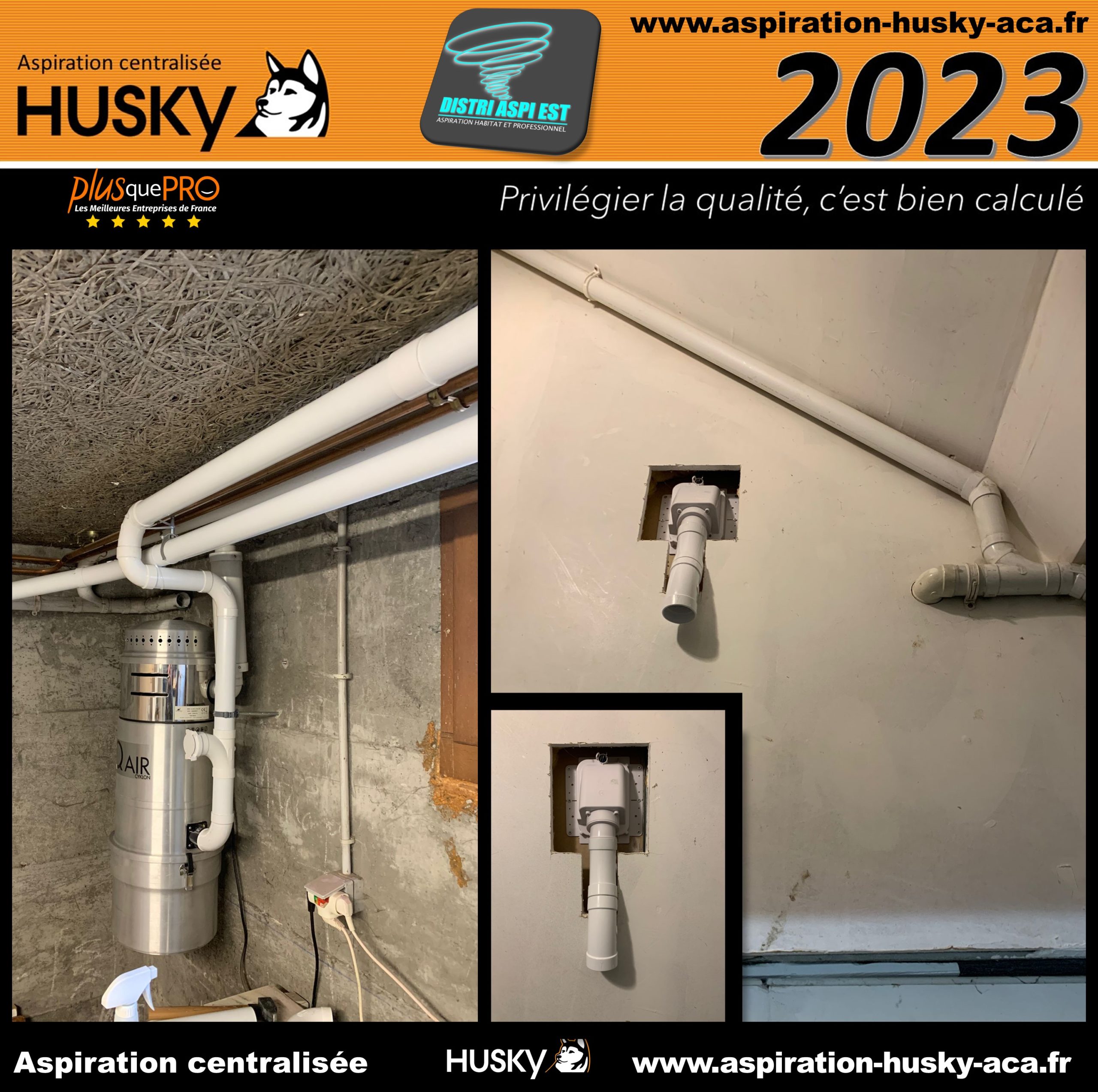 Une réalisation de la société HUSKY ACA dans une maison existante située à Kembs 68680 dans le département du Haut-Rhin en Alsace, région Grand Est. Cette maison était équipé d’un réseau PVC qui alimentait plusieurs prises d’aspiration classiques l’ensemble, raccordé sur un ancien modèle de la marque Husky. Les clients ont souhaité rajouter 1 prise pour flexible rétractable de 12 mètres.