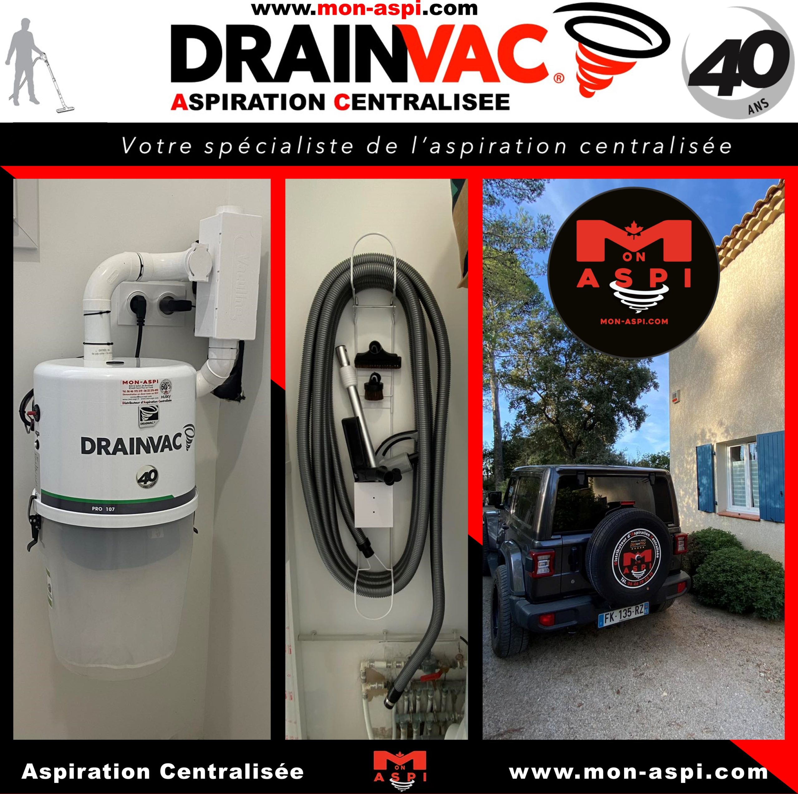 Une réalisation de la société MON ASPI dans une maison située à Flassans-sur-Issole 83340 dans le Var, en région Provence-Alpes-Côte d’Azur. Installation d’un réseau PVC qui alimente 3 prises d’aspiration classiques. C’est un modèle DRAINVAC PROE 107 qui a été raccordé sur ce réseau, modèle compact et performante, d’une puissance d’aspiration de 3880 mm de dépression et 315 m3/h, équipé d’un filtre lavable, hybride, niveau sonore 65 dB, ce modèle est couvert d’une garantie de 5 ans. La société MON ASPI a également installé un système de mise en route à distance radiocommandé par le biais d’un interrupteur sur la poignée du flexible d’aspiration.