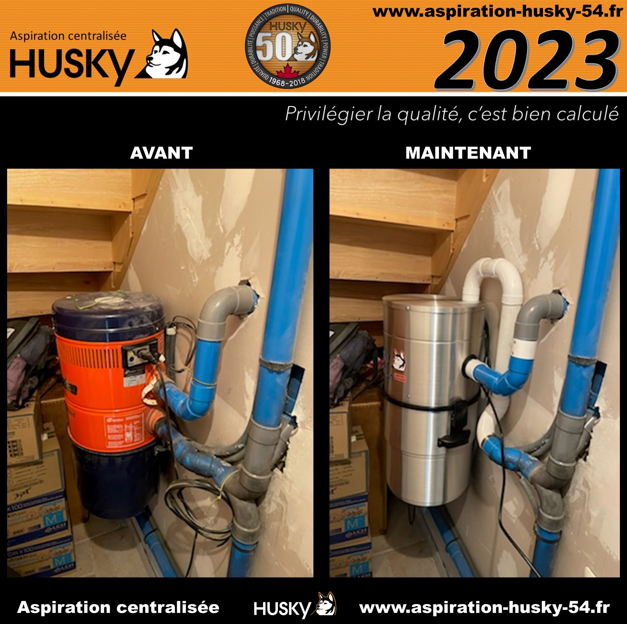 Intervention de la société Aspiration Centralisée Lorraine dans une maison existante située à Écrouves 54200 dans le département dans le département de Meurthe-et-Moselle et la région Grand Est. Cette maison était équipée d’un système d’aspiration centralisée avec la marque SANCLEAN sur un réseau PVC qui alimente plusieurs prises d’aspiration classiques. Les clients ont opté pour le remplacement de leur centrale d’aspiration avec un modèle Husky ÉVOLUTION, série limitée, haut de gamme en aluminium brossé ; Cuve légère de très grande capacité (34,4 litres) munie de poignées ergonomiques et d’attaches pour faciliter l’utilisation ; Cage de filtration avec filtre lavable antibactérien certifié SILPURE pour une qualité d’air accrue avec prévention des odeurs ; Hybride : peut être utilisé avec ou sans sac de filtration ; moteur by-pass avec système de démarrage/arrêt progressif du moteur, pour une fonctionnalité supérieure et une durabilité accrue du moteur, moteur très performant d’une puissance d’aspiration de 3977 mm de dépression, couvert d’une garantie de 25 ans par le manufacturier Canadien des produits Husky.