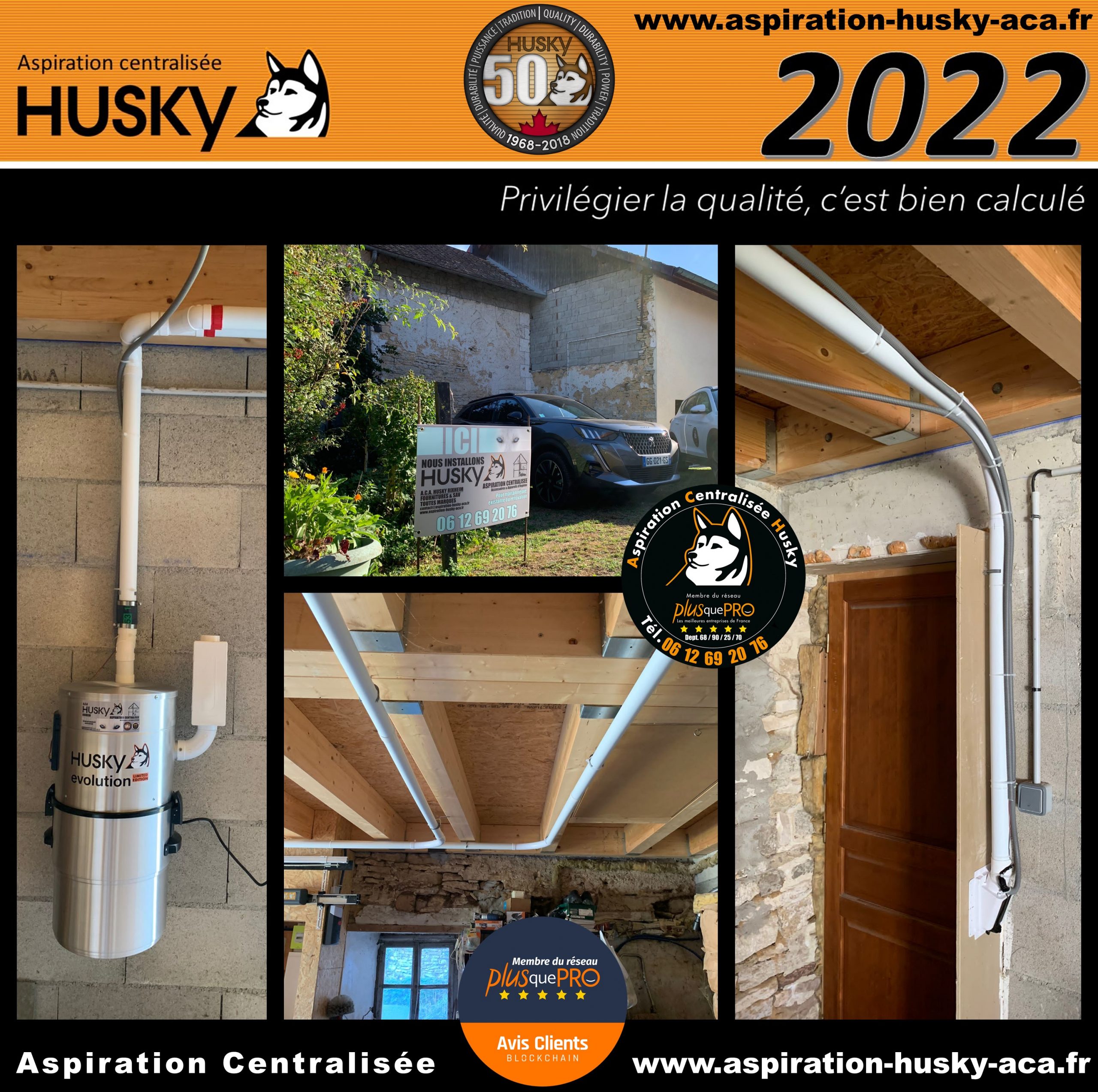 Une réalisation de la société HUSKY A.C.A dans une maison existante située Chassagne-Saint-Denis 25290 dans le département du Doubs, en région Bourgogne-Franche-Comté. Installation d’un réseau PVC qui alimente 2 prises pour flexible rétractable RétraFlex de 12 mètres. L’ensemble de ce réseau a été raccordé sur un modèle Husky ÉVOLUTION, système  hybride équipé d’un filtre lavable en machine à laver et traité SILPURE, diode de contrôle pour un minimum d’informations aux utilisateurs, cuve de 34 litres, moteur avec démarrage et arrêt temporisé, d’une puissance d’aspiration de 39772 mm de dépression (39 KPA), modèle couvert d’une garantie de 25 ans par le manufacturier Canadien des produits Husky.