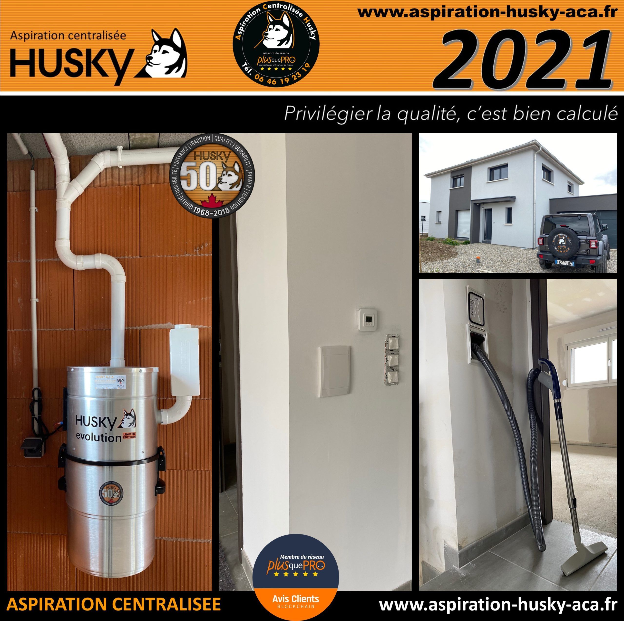L’ensemble de ce réseau sera raccordé sur un modèle Husky ÉVOLUTION « édition limitée » de la marque Husky. Équipé d’un moteur by-pass d ’une puissance d’aspiration de 3977 mm de dépression avec démarrage et arrêt temporisé, hybride, filtre traité SILPURE et lavable en machine à laver, cuve de 34 litres, diode de contrôle, tout en aluminium brossé et couvert d’une garantie de 25 ans par le manufacturier des produits Husky.