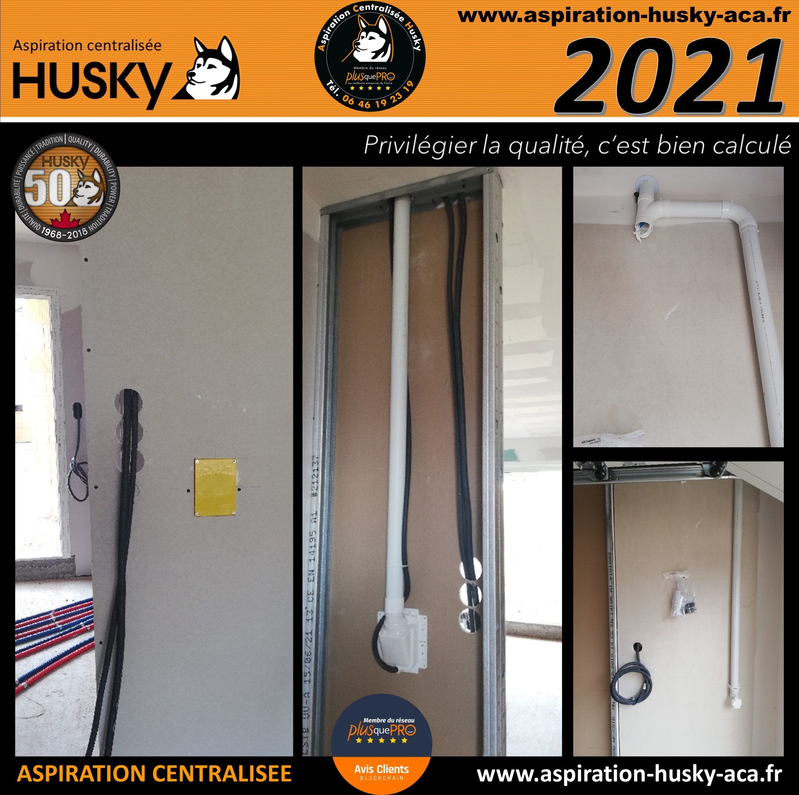 Une réalisation de la société HUSKY A.C.A dans une maison en construction située à Magny-Vernois 70200 dans le département de la Haute-Saône, en région Bourgogne-Franche-Comté. Installation d’un réseau PVC qui alimente 1 prise pour flexible rétractable avec un flexible d’une longueur de 12 mètres ainsi qu’une prise d’aspiration classique au garage. L’ensemble de ce réseau sera raccordé sur un modèle Husky ÉVOLUTION « édition limitée » est équipé d’un moteur by-pass d ’une puissance d’aspiration de 3977 mm de dépression avec démarrage et arrêt temporisé, hybride, filtre traité SILPURE et lavable en machine à laver, cuve de 34 litres, diode de contrôle, tout en aluminium brossé et couvert d’une garantie de 25 ans par le manufacturier des produits Husky.