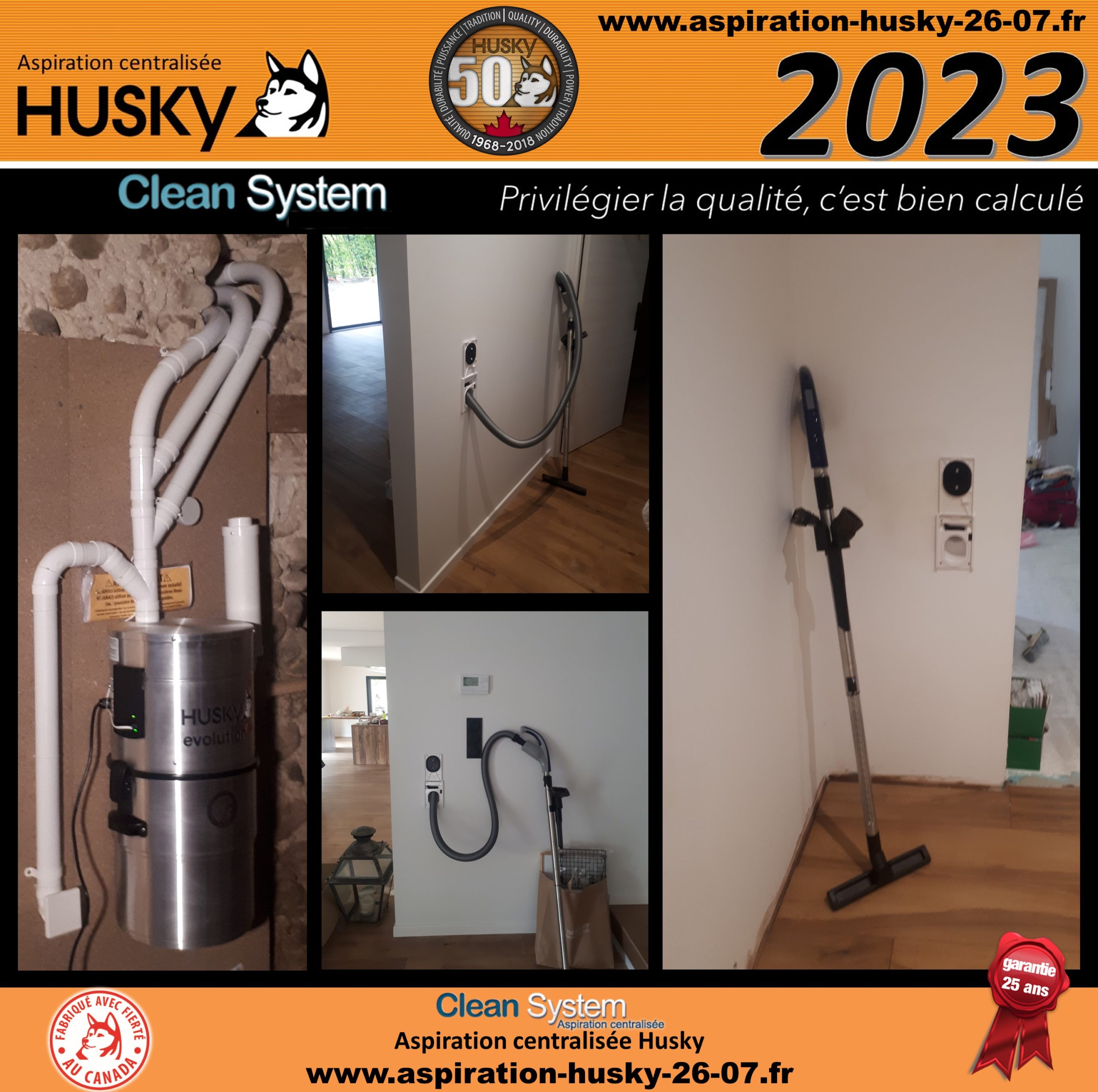 Installation d’un réseau PVC qui alimente 3 prises pour système de flexible rétractable de 9 mètres. L’ensemble de ce réseau a été raccordé sur un modèle Husky ÉVOLUTION, système hybride, équipé d’un moteur by-pass avec démarrage et arrêt progressif, d’une puissance d’aspiration de 3977 mm de dépression, diode de contrôle, cuve de 34 litres avec filtre lavable et traité SILPURE. Ce modèle est couvert d’une garantie de 25 ans par le manufacturier Canadien des produits Husky !