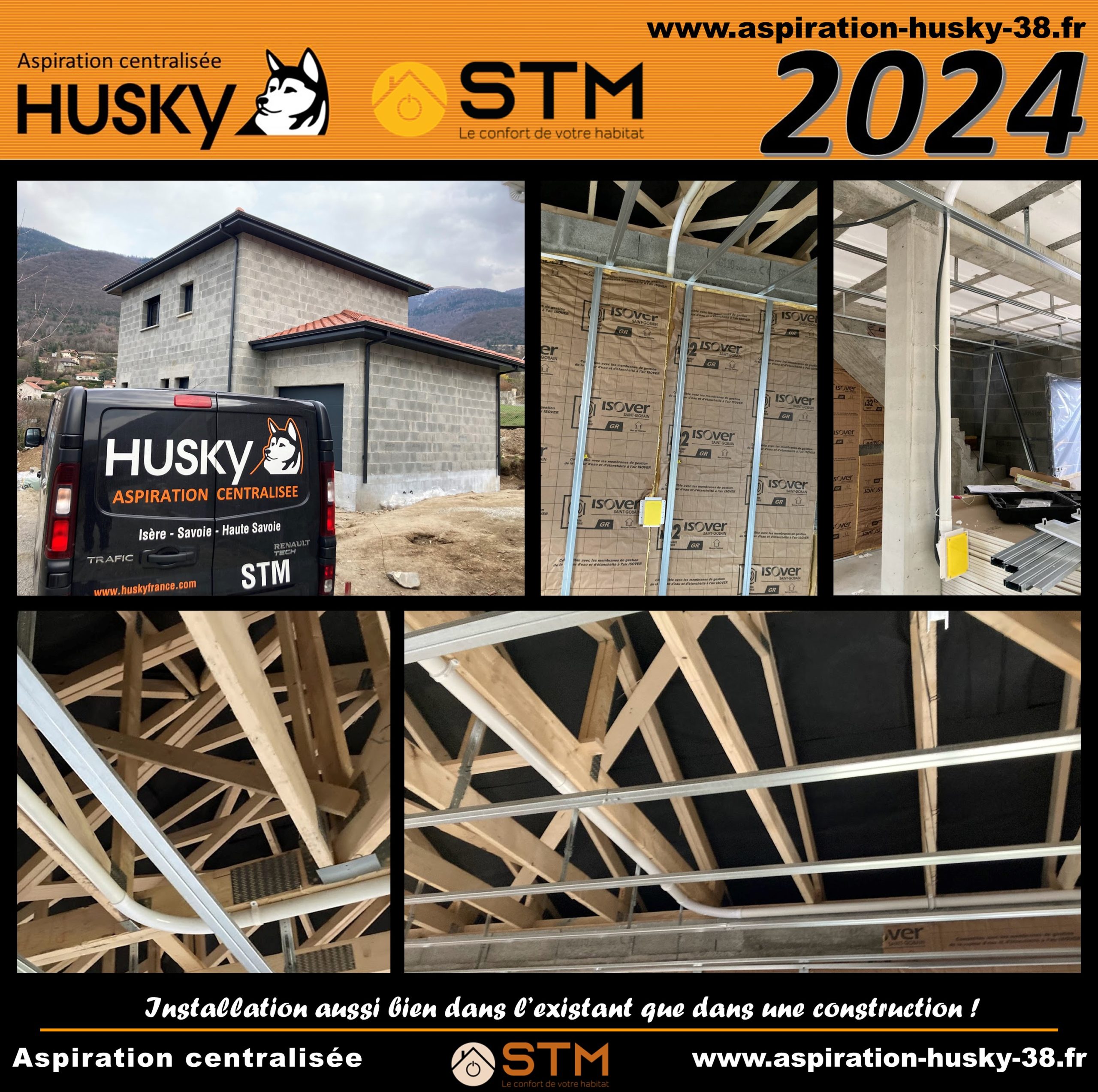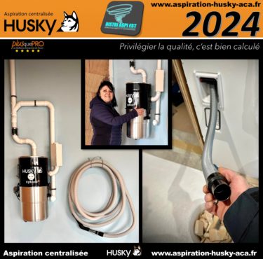 Installation d’un réseau PVC qui alimente 2 prises pour système de flexible rétractable avec des flexibles de 12 mètres. L’ensemble de ce réseau sera raccordé sur un modèle Husky ÉVOLUTION, modèle poussière, hybride, équipé d’un moteur by-pass d’une puissance d’aspiration de 3977 mm de dépression, démarrage et arrêt du moteur temporisé, filtre lavable et traité SILPURE, diode de contrôle, capacité de cuve de 34 litres, tout en aluminium brossée et couvert d’une garantie de 25 ans par le manufacturier des produits Husky.