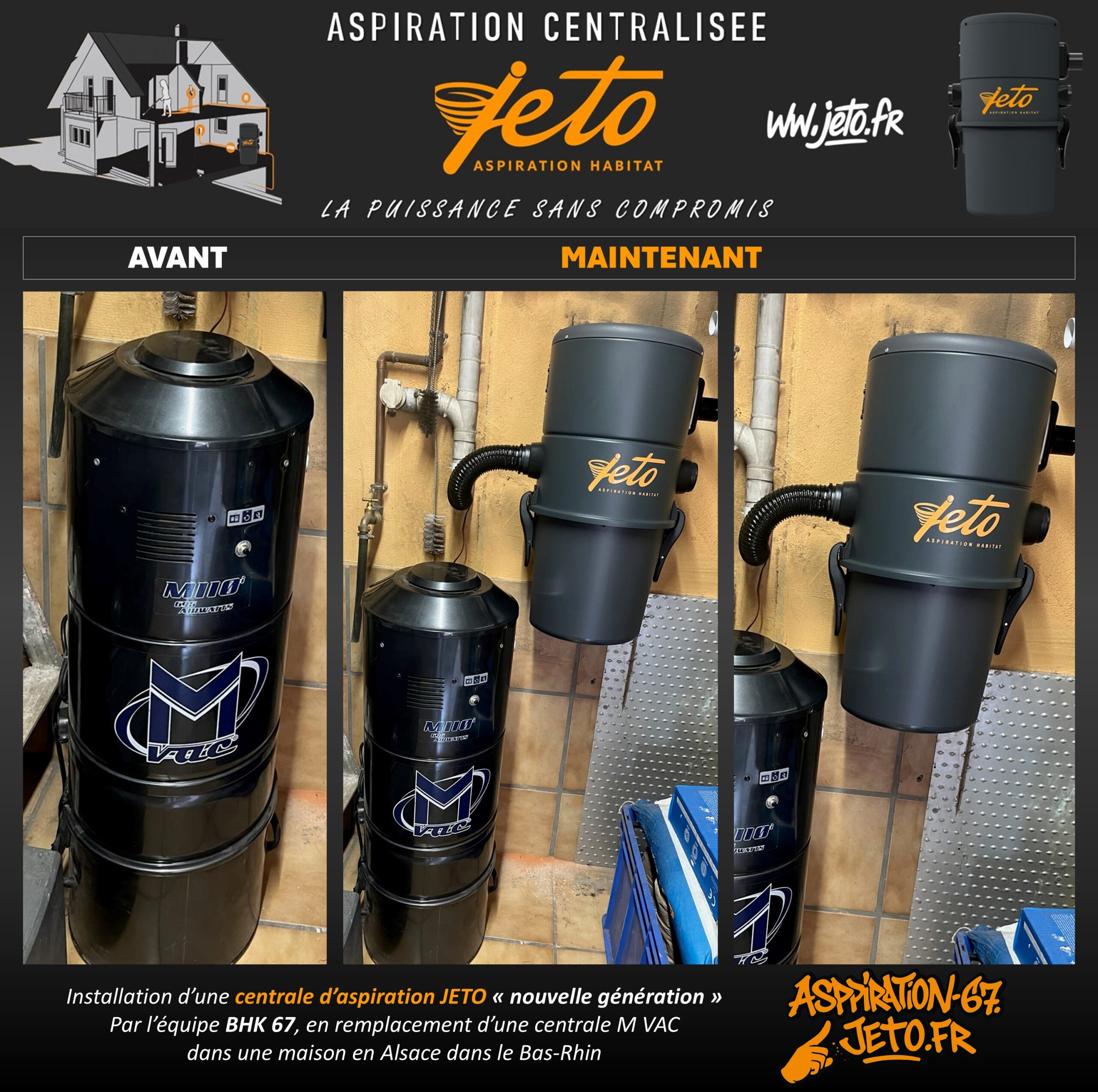 C’est à Kolbsheim 67120 en Alsace dans le Bas-Rhin, que l’équipe BHK Concept – Aspiration Centralisée a réalisé le remplacement d’un ancien système M-VAC par une centrale JETO, la nouvelle référence européenne de l’aspiration centralisée.