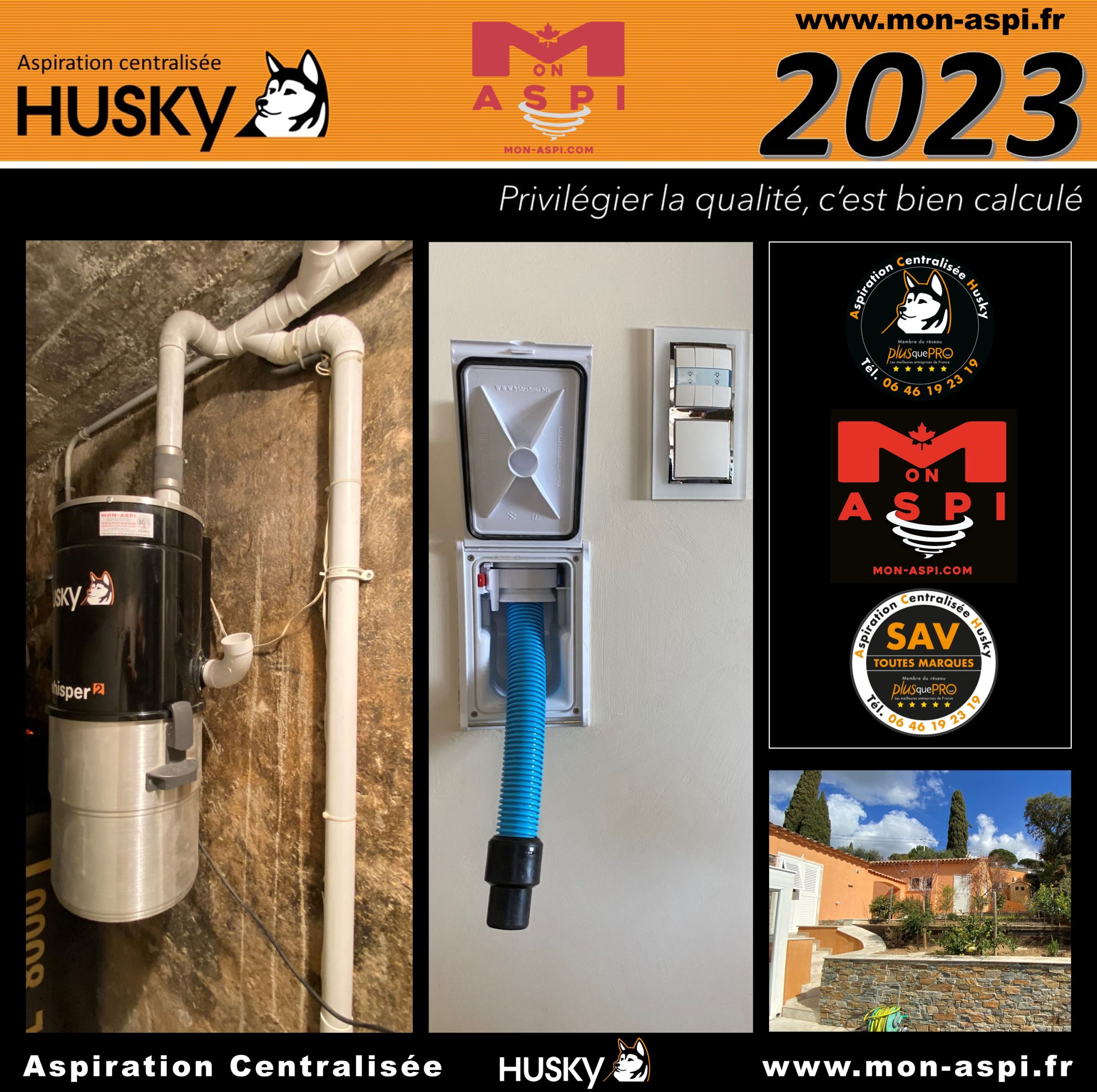 Intervention de la société MON ASPI dans une maison existante situé à Cavalaire-sur-Mer 83240 dans le département du Var, région Provence-Alpes-Côte d’Azur. Cette maison est équipée d’un réseau PVC d’environ 30 mètres et qui alimentait 2 prises pour flexibles rétractables de 9 mètres ainsi qu’une prise d’aspiration classique, l’ensemble raccordé sur un modèle Husky WHISPER². L’intervention de la société MON ASPI avait pour but de réparer les prises pour flexibles rétractables, effectuer le remplacement du filtre, et la fourniture d’un flexible extensible. La centrale d’aspiration HUSKY WISPER² est un modèle unique et breveté, étant équipé d’un moteur by-pass avec démarrage et arrêt temporisé, d’une puissance d’aspiration de 3977 mm de dépression pour seulement 62 décibels ! Mais aussi, équipé d’un filtre traité SILPURE et lavable en machine à laver, diode de contrôle, et couvert d’une garantie de 25 ans par le manufacturier des produits Husky.