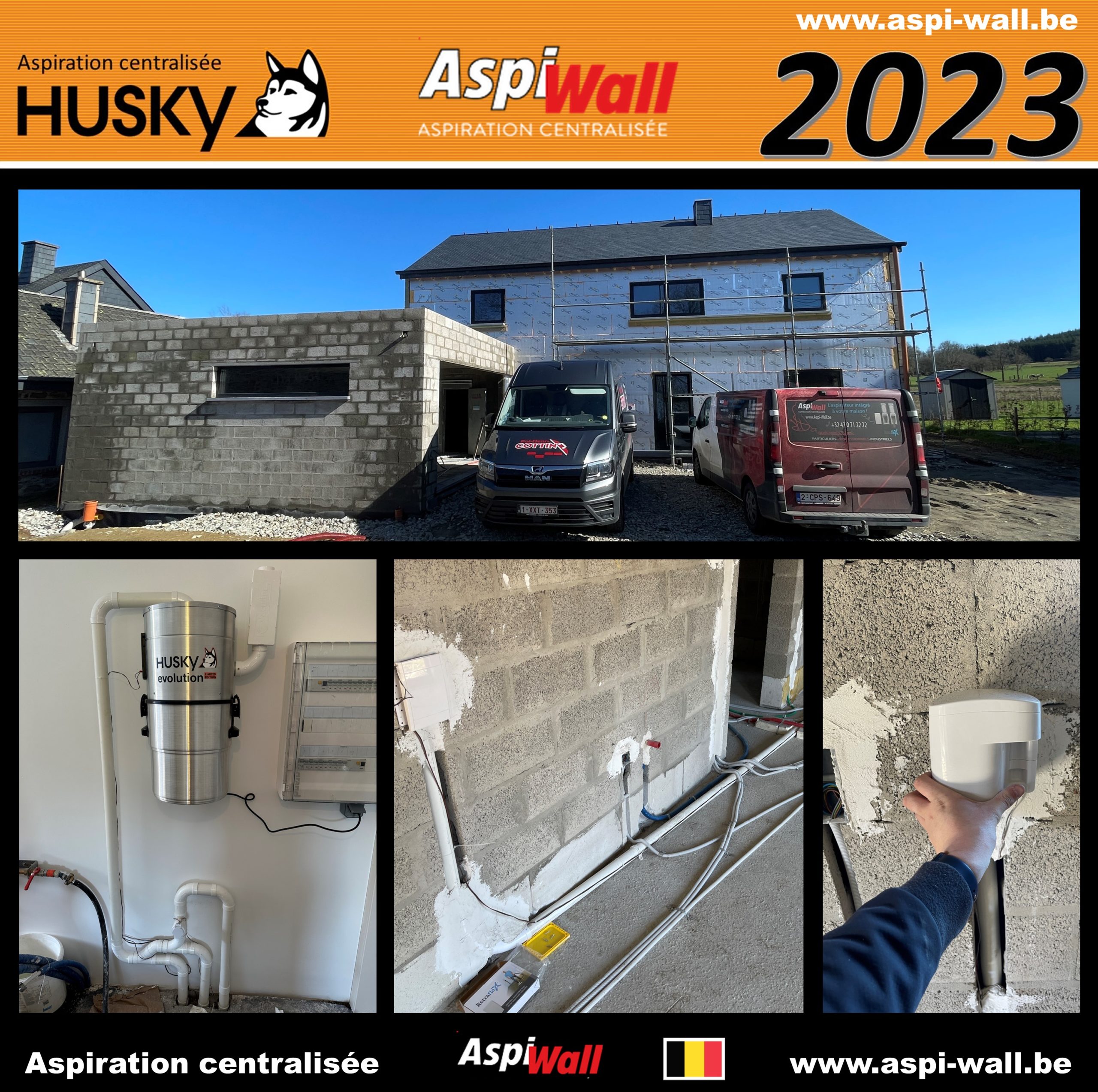 C’est après avoir fourni un pack complète « aspiration centralisée », les clients ont réalisés l’installation d’un réseau PVC de 48 mètres qui alimente 2 prises pour système de flexibles rétractables de 15 mètres ainsi que de l’option Wally-Flex et d’une prise d’aspiration classique dans cette nouvelle maison en construction située à Anloy 6890 dans la Région Wallonne en Belgique. L’équipe ASPI WALL aspiration centralisée est intervenu pour finaliser l’installation, en recordent les 3 arrivées du réseau sur un modèle Husky ÉVOLUTION, système poussière, hybride « utilisation avec ou sans sac au choix des utilisateurs, diode de contrôle, filtre traité SILPURE et lavable en machine à laver, cuve de 34 litres tout en aluminium brossé, moteur by-pass avec démarrage et arrêt temporisé, d’une puissance d’aspiration de 3977 mm de dépression. Ce modèle est couvert d’une garantie de 25 ans par le manufacturier Canadien des produits Husky.