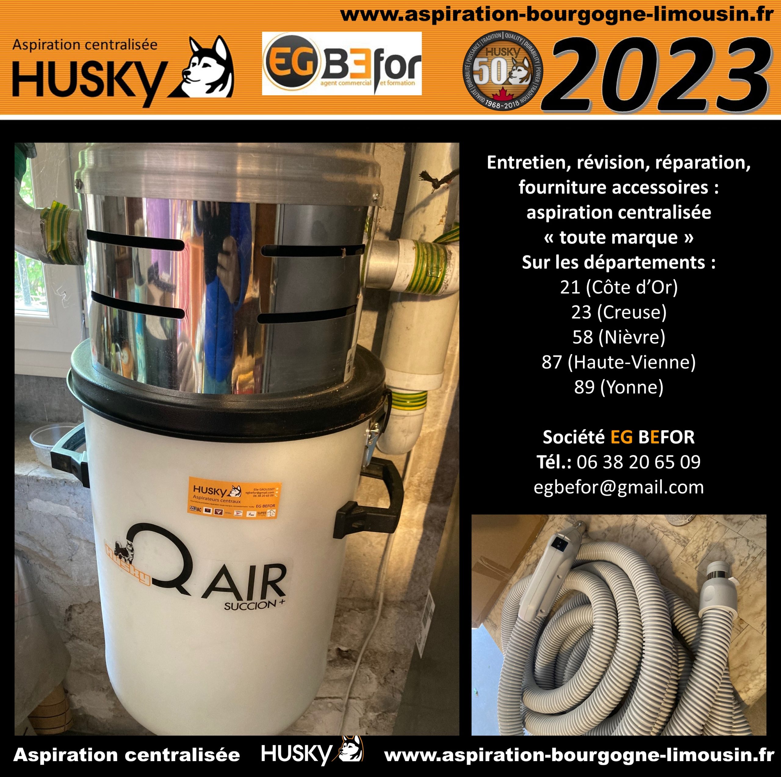 Intervention de la société EG BEFOR dans une maison existante située à Joigny 89300 dans le département de l’Yonne, région Bourgogne-Franche-Comté. Cette maison est équipée d’un système d’aspiration centralisée HUSKY avec un modèle HUSKY 3611 sur un réseau PVC qui alimente 3 prises d’aspiration classiques. C’est après 17 années d’utilisation, que la société EG BEFOR a réalisé un contrôle de l’ensemble avec le remplacement des charbons, du filtre, du flexible d’aspiration de la canne télescopique et la brosse. Les utilisateurs étaient ravis et enchanté de la durabilité des produits Husky ainsi que de la rapidité et efficacité de l’intervention !