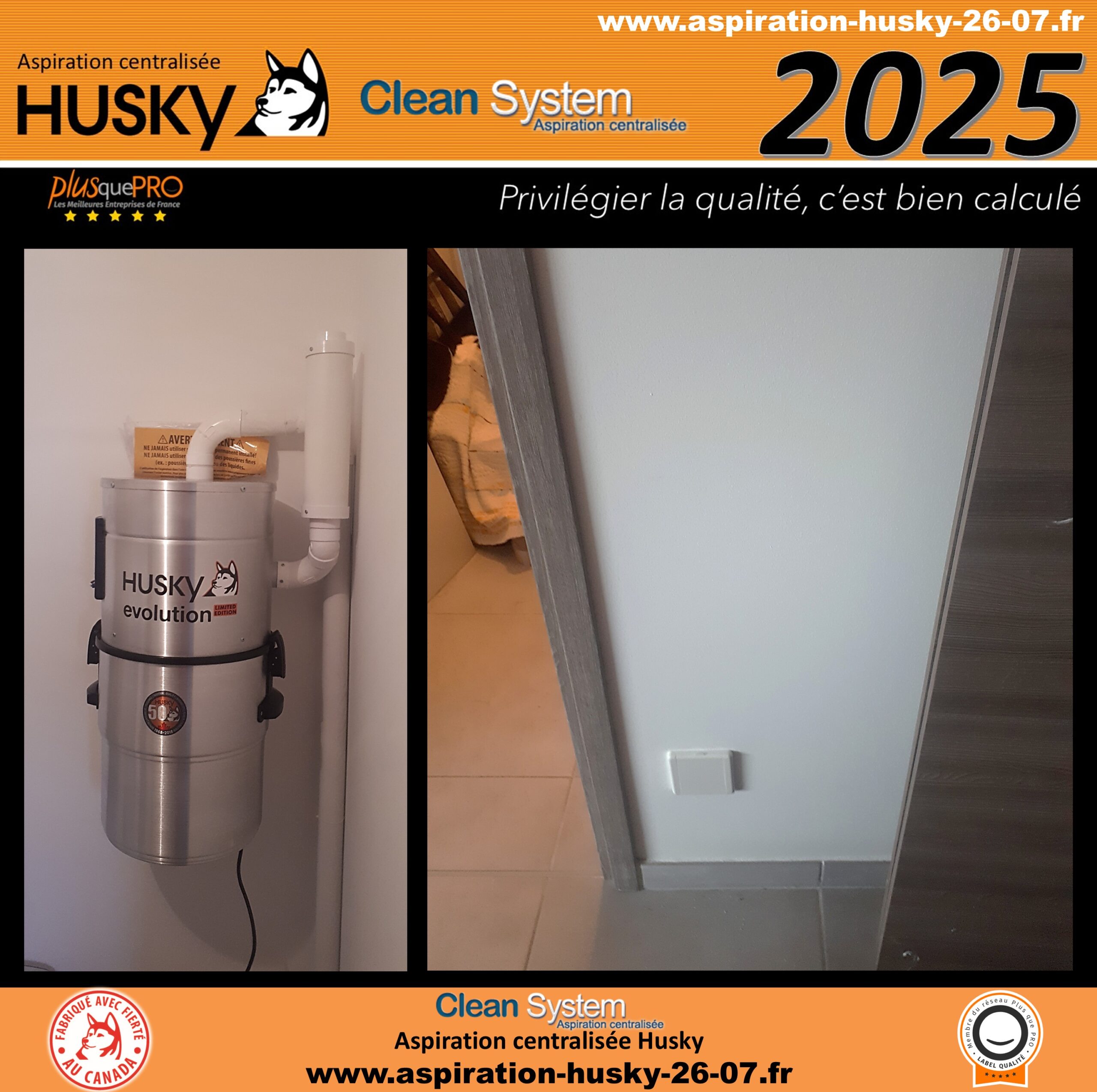 Ce réseau est raccordé à une centrale d’aspiration HUSKY ÉVOLUTION, reconnue pour sa fiabilité et ses performances exceptionnelles.
