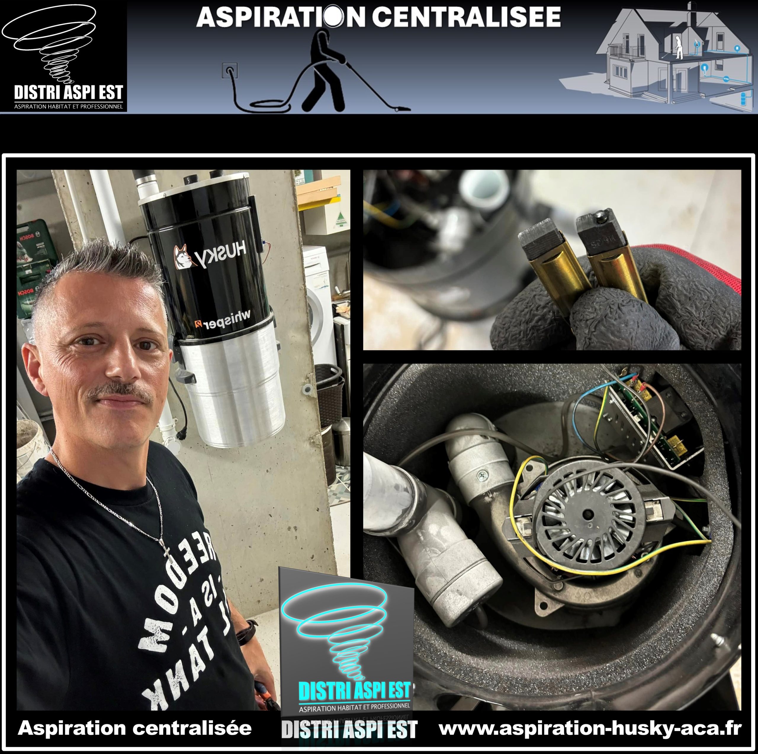 Cette maison est équipée d’un système d’aspiration centralisée avec la marque sur un réseau PVC qui alimente plusieurs prises d’aspiration classiques. José, responsable de la société A.C.A DISTRI ASPI EST, a réalisé le contrôle de l’ensemble du réseau, prises d’aspiration, flexible, accessoires et la centrale. Le remplacement des charbons moteur de la centrale Husky Whisper² était nécessaire et permet d’assurer aux clients de pérenniser le bon fonctionnement de l’ensemble sur du long terme.