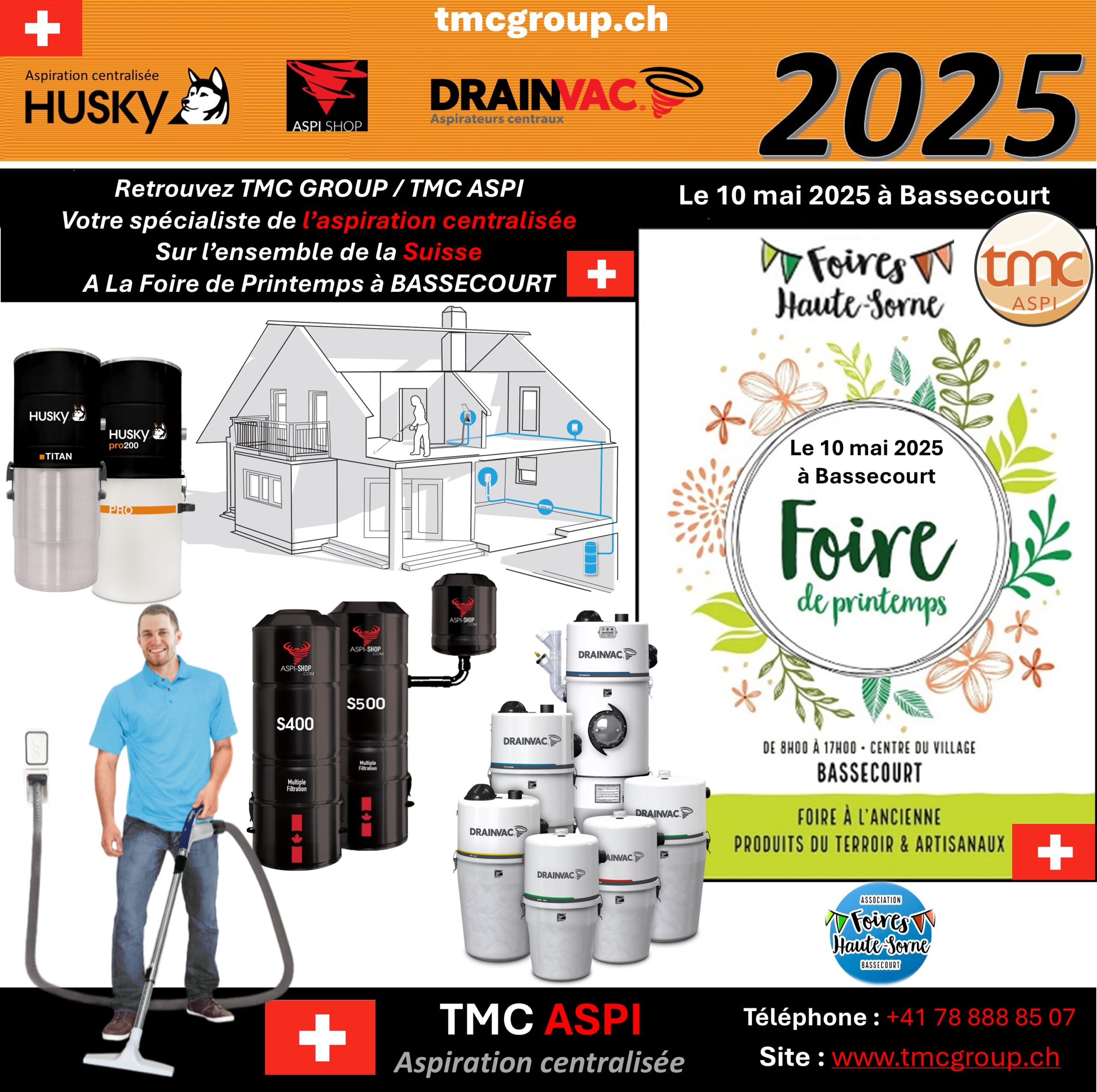 Retrouvez l’équipe TMC ASPI le 10 mai 2025 à la traditionnelle foire de printemps à Bassecourt.