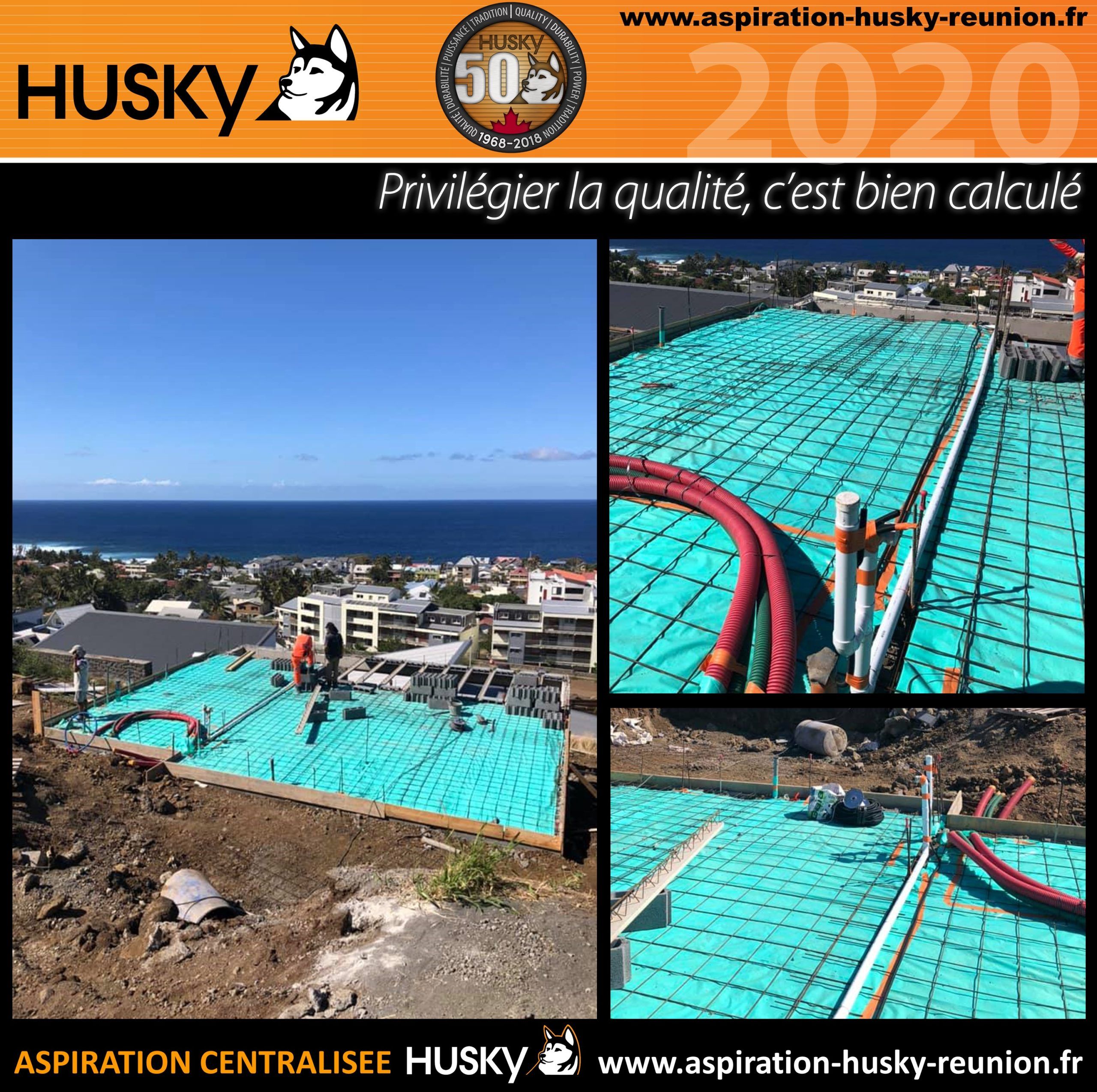 Démarrage d’un nouveau chantier pour l’équipe ASPIRUN SYSTEM, votre installateur de systèmes centraux sur l’Océan Indien, dans une villa de 105 M² en construction suitée à Saint-Pierre 97410 sur l’Ile de la Réunion ! Installation d’un réseau PVC antistatique qui alimentera 3 prises d’aspiration, 2 prises au rez-de-chaussée et 1 prise pour l’étage, c’est à l’aide d’un flexible de 9.10 que ces clients pourront couvrir l’ensemble de cette nouvelle construction. Ce réseau sera raccordé sur un modèle Husky ÉVOLUTION, modèle spécifique pour le 50ème anniversaire de la marque Husky, hybride, équipé d’un filtre lavable en machine à laver et traité SILPURE, diode de contrôle, puissance d’aspiration de 3977 mm de dépression avec démarrage et arrêt du moteur temporisé, cuve de 34 litres et couvert d’une garantie de 25 ans par le manufacturier des produits Husky.