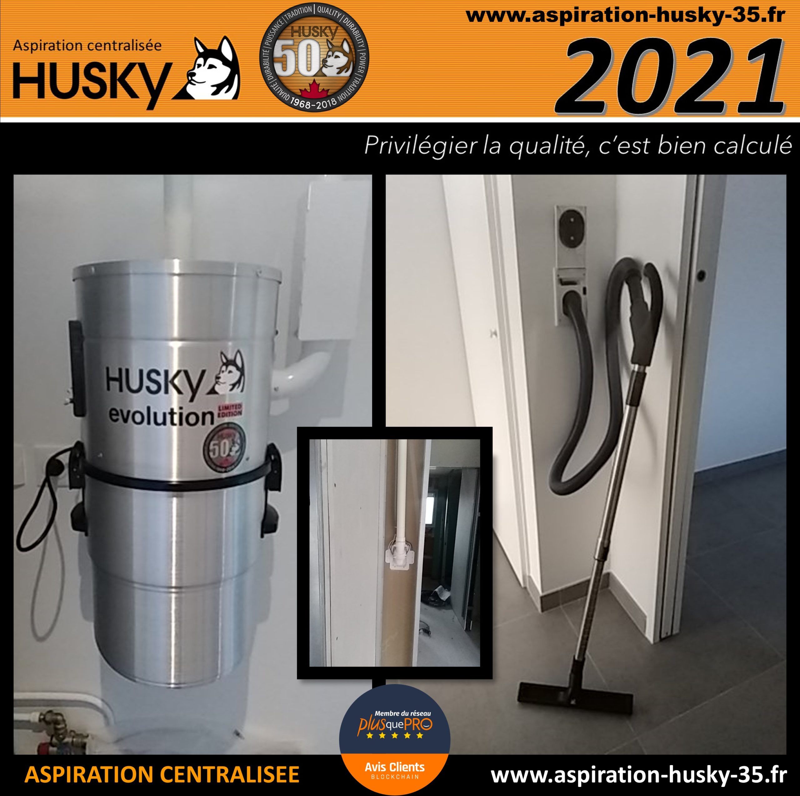 L’ensemble de ce réseau à été raccordé sur un modèle Husky ÉVOLUTION, édition limité spécifique pour le 50ème anniversaire de la marque ! Équipé d’un moteur by-pass d’une puissance d’aspiration de 3977 mm de dépression avec démarrage et arrêt du moteur temporisé, diode de contrôle, filtre de la centrale d’aspiration est traité SILPURE et lavable en machine à laver, capacité de cuve de 34 litres, modèle hybride, tout en aluminium brossé et couvert d’une garantie de 25 ans par le manufacturier des produits Husky.