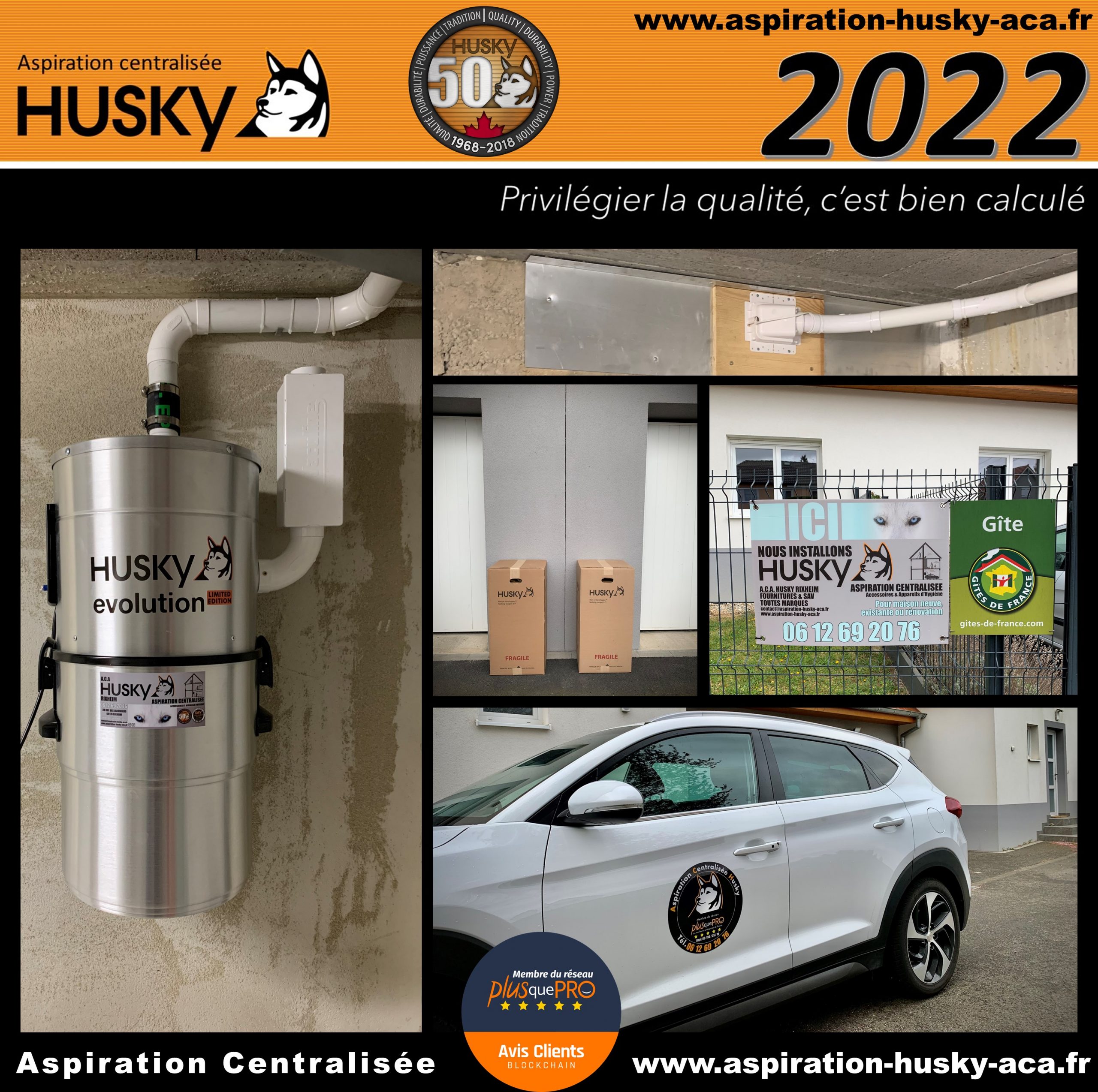 Ces 2 réseaux ont été raccordé sur des centrales Husky ÉVOLUTION, un modèle « édition limitée » équipé d’un moteur by-pass d ’une puissance d’aspiration de 3977 mm de dépression avec démarrage et arrêt temporisé, hybride, filtre traité SILPURE et lavable en machine à laver, cuve de 34 litres, diode de contrôle, tout en aluminium brossé et couvert d’une garantie de 25 ans par le manufacturier des produits Husky.