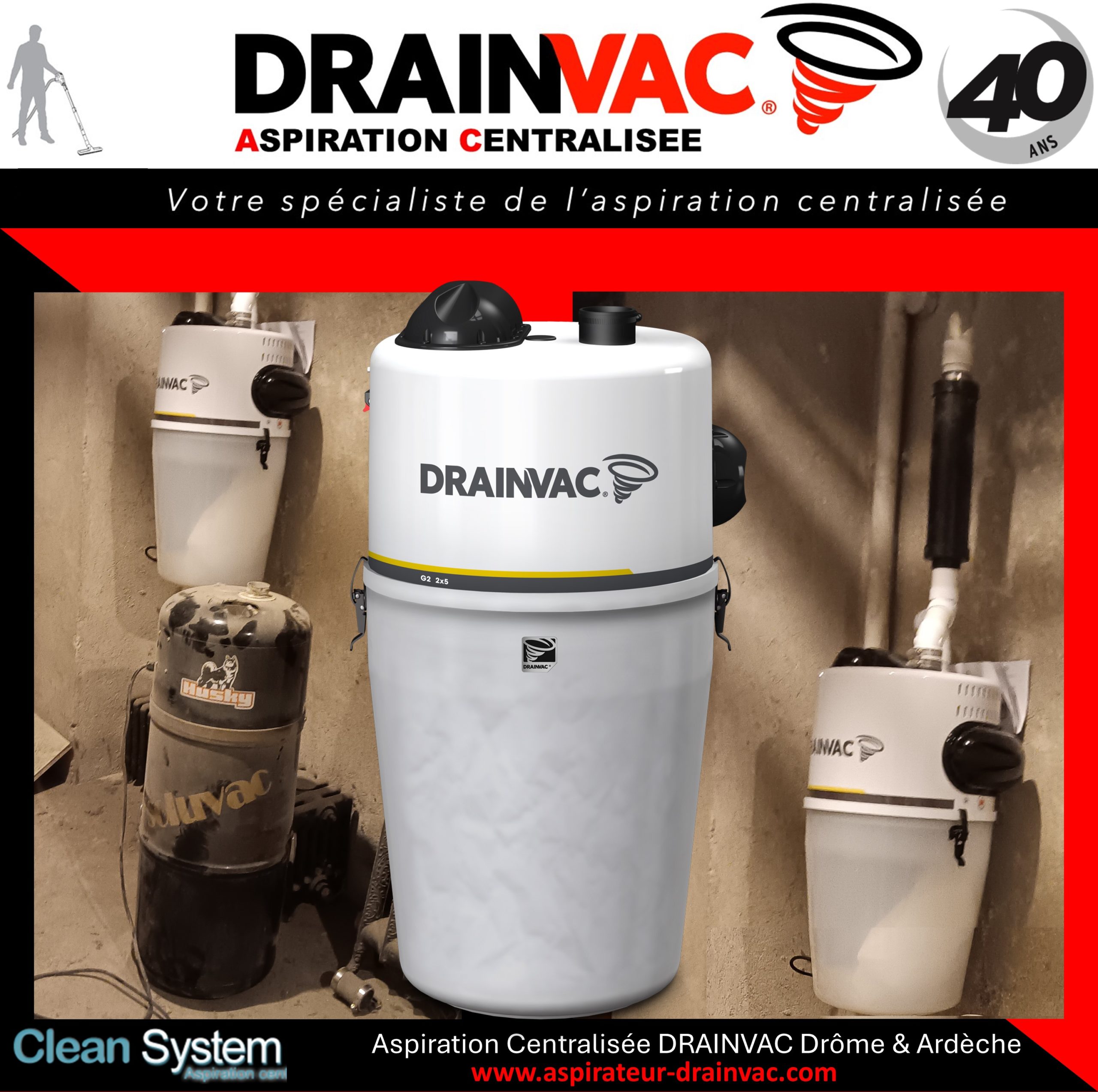 Intervention de la société Clean-System dans une maison existante située à Boffres 07440 dans le département de l’Ardèche, région d’Auvergne-Rhône-Alpes. Cette maison était équipée d’un système d’aspiration centralisée avec la marque SOLUVAC sur un réseau PVC qui alimente plusieurs prises d’aspiration classiques. Les clients ont opté pour le remplacement de leur centrale d’aspiration avec un modèle DRAINVAC G2E-2×5-M, modèle hybride, équipé d’un filtre lavable en machine à laver, 2 moteurs by-pass d’une puissance d’aspiration de 4318 mm de dépression 271 M3/H, capacité de cuve de 41 litres !