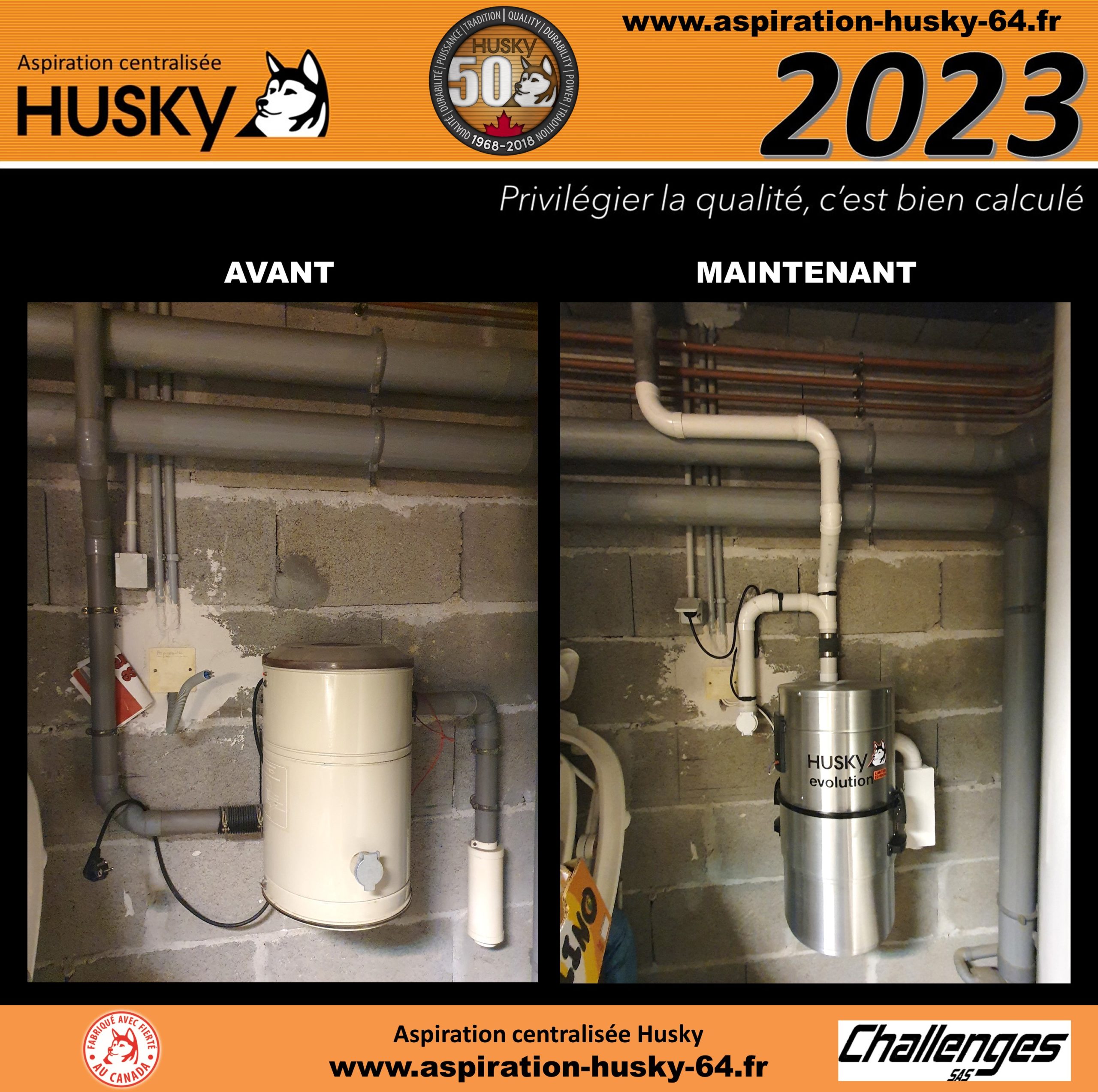 Le modèle Husky ÉVOLUTION est un modèle hybride, équipé d’un filtre traité SILPURE et lavable en machine à laver, diode de contrôle, capacité de cuve de 34 litres, moteur by-pass avec démarrage et arrêt temporisé, d’une puissance d’aspiration de 3977 mm de dépression, modèle couvert d’une garantie de 25 ans par le manufacturier Canadien des produits Husky.