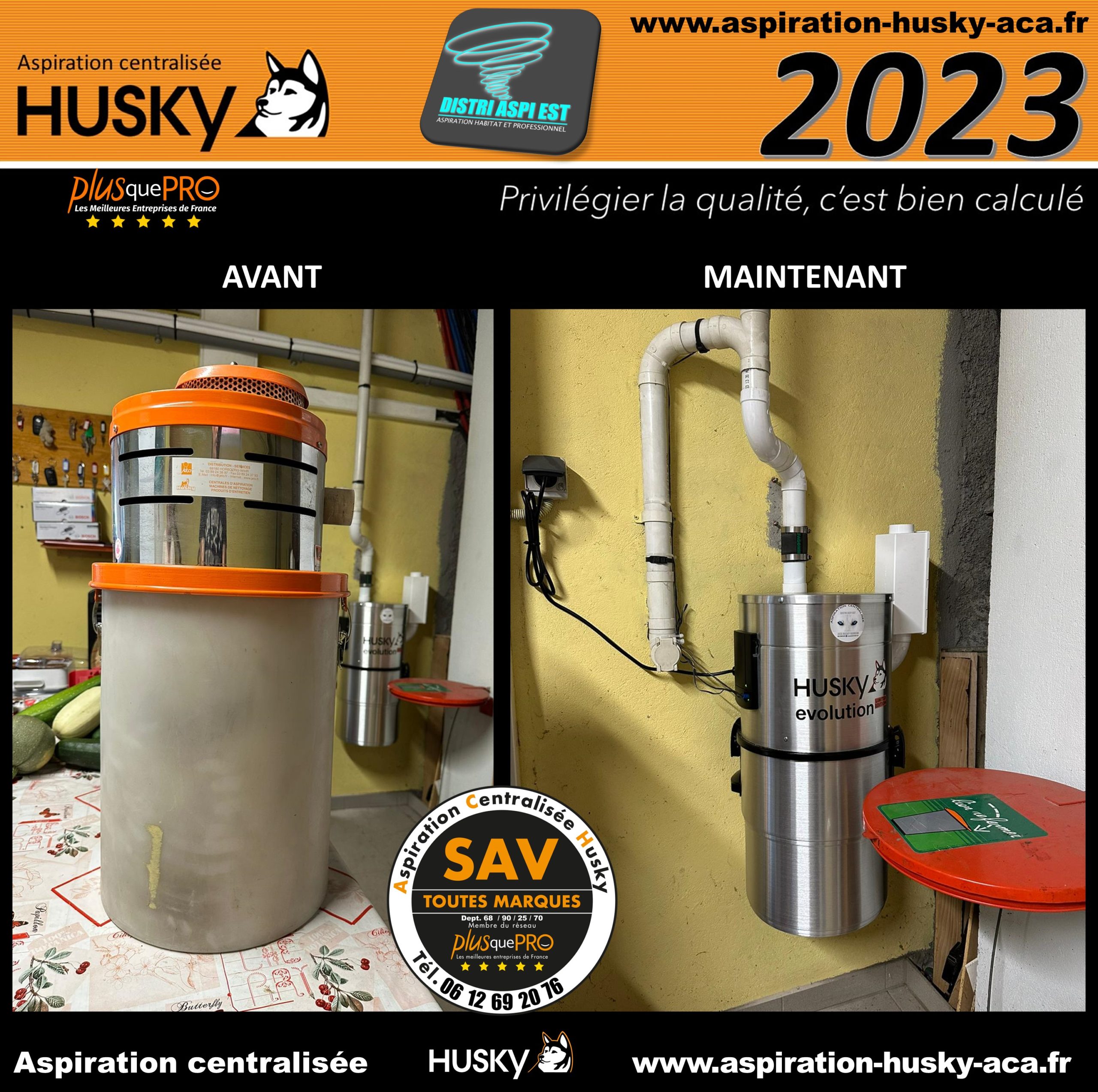 Intervention de la société HUSKY A.C.A dans une maison existante située à Geishouse 68690 dans le département du Haut-Rhin en Alsace, région Grand-Est. Cette maison était équipée d’un système d’aspiration centralisée depuis plusieurs années, ancien modèle 3611 de la gamme Husky « eau & poussière » sur un réseau PVC  qui alimente plusieurs prises d’aspiration classiques. Les clients ont opté pour le remplacement de leur ancien modèle par un modèle Husky ÉVOLUTION, système  hybride équipé d’un filtre lavable en machine à laver et traité SILPURE, diode de contrôle pour un minimum d’informations aux utilisateurs, cuve de 34 litres, moteur avec démarrage et arrêt temporisé, d’une puissance d’aspiration de 3972 mm de dépression (39 KPA) modèle couvert d’une garantie de 25 ans par le manufacturier Canadien des produits Husky.