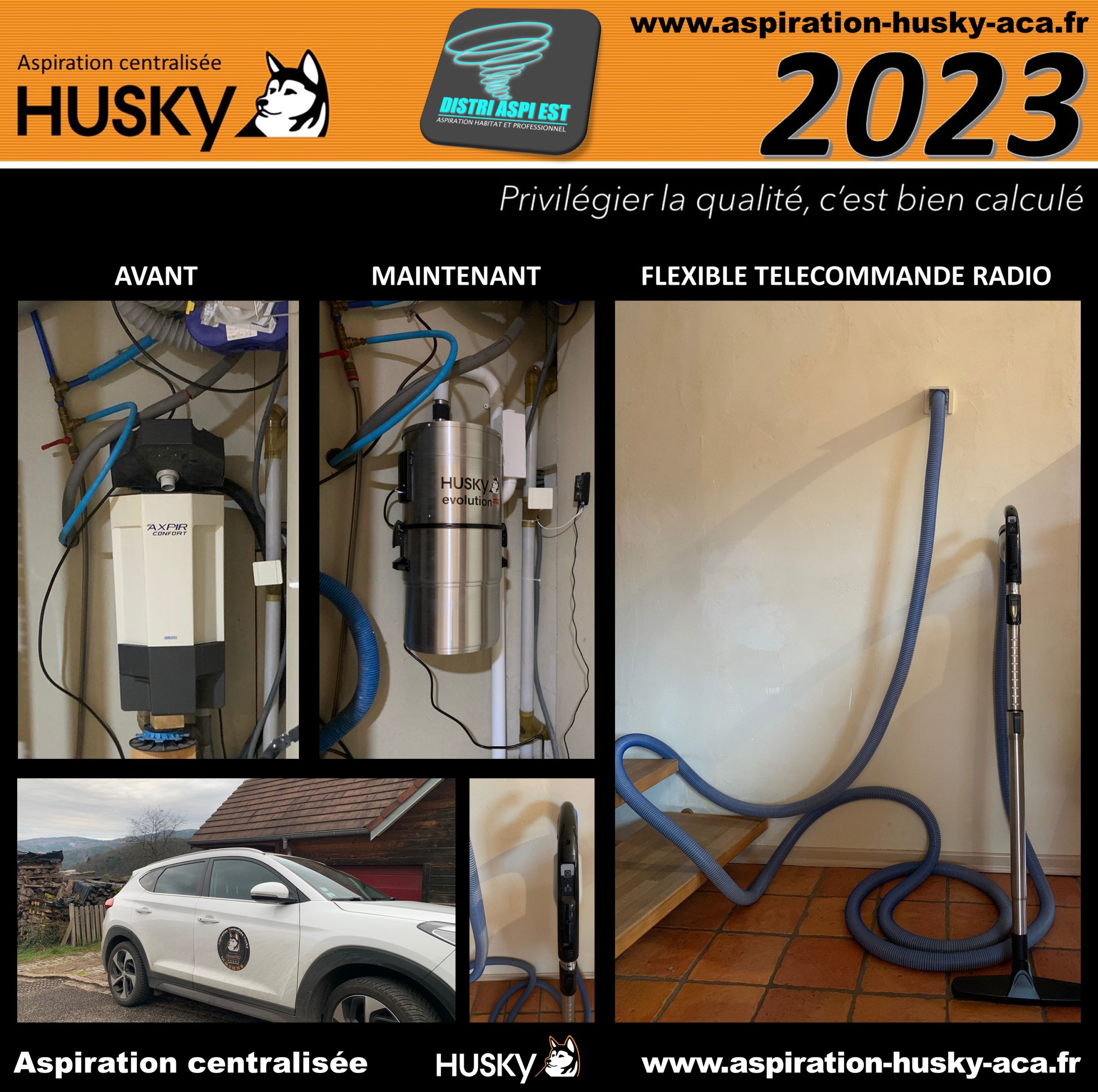 Intervention de la DISTRI EST ASPI ACA HUSKY dans une maison existante située à Rombach-Le-Franc 68660 dans le département du Haut-Rhin en Alsace région Grand-Est. Cette maison était équipée d’un système d’aspiration centralisée avec la marque ALDES sur un réseau PVC qui alimente plusieurs prises d’aspiration classiques. Les client sont opté pour le remplacement de leur ancienne centrale d’aspiration par un modèle Husky ÉVOLUTION « édition limitée » est équipé d’un moteur by-pass d’une puissance d’aspiration de 3977 mm de dépression avec démarrage et arrêt temporisé, hybride, filtre traité SILPURE et lavable en machine à laver, cuve de 34 litres, diode de contrôle, tout en aluminium brossé et couvert d’une garantie de 25 ans par le manufacturier des produits Husky. Ainsi que la mise en place d’un flexible radiocommandé pour la mise en route à distance de la centrale d’aspiration à l’aide d’un interrupteur positionnée sur la pognée du flexible !