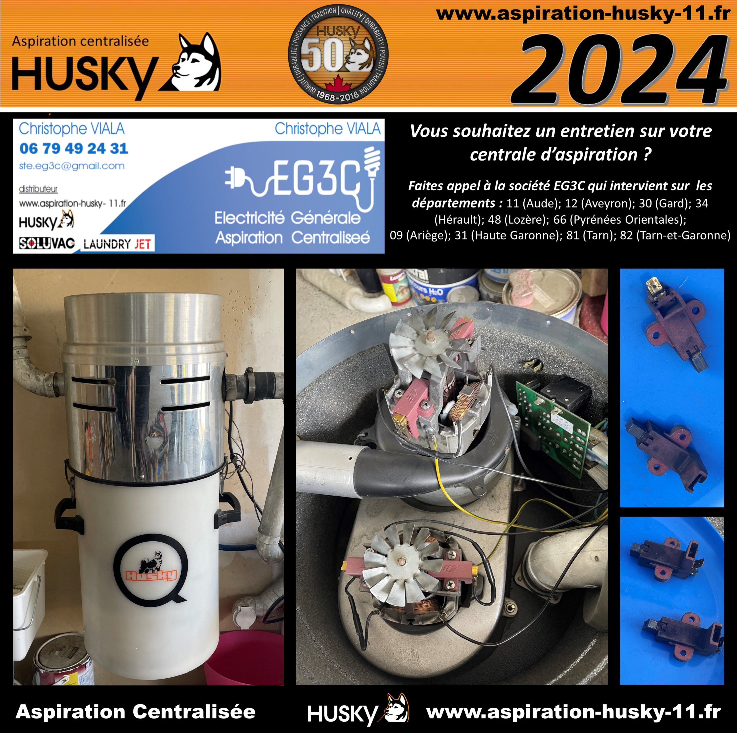 Intervention de la société EG3C dans une maison existante située à Toulouse 31000 dans le département de la Haute-Garonne, en région Occitanie. Cette maison est équipée depuis 14 ans d’un système d’aspiration centralisée Husky sur un réseau PVC qui alimente 5 prises d’aspiration classiques. Les clients ont souhaité un contrôle de la centrale d’aspiration, la société EG3C a procédé au contrôle des moteurs et le remplacement des 4 charbons, ainsi que le remplacement du filtre lavable et un contrôle du réseau et des prises d’aspiration.