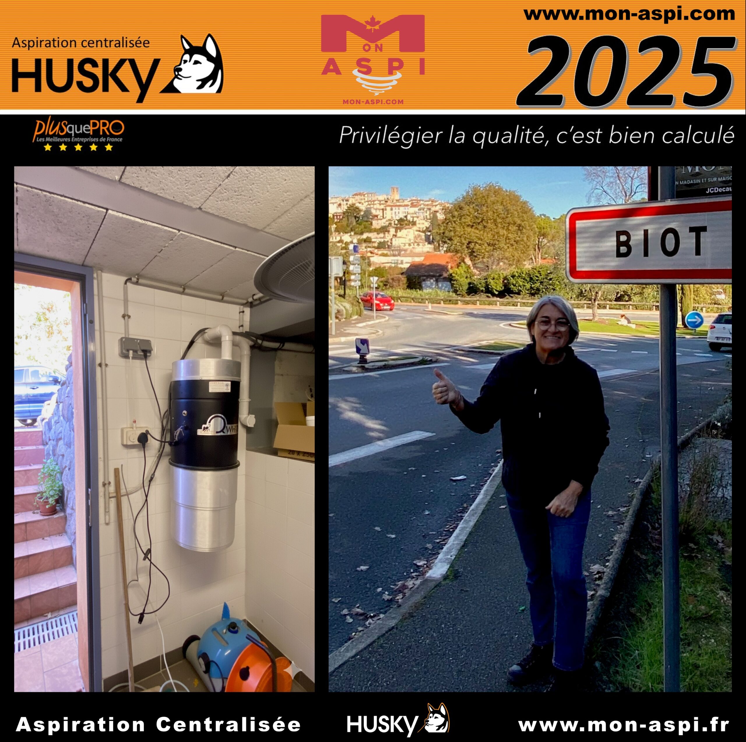 L’équipe MON ASPI, spécialiste local de l’aspiration centralisée, est intervenue dans une maison située à Biot 06410, dans le département des Alpes-Maritimes, en région Provence-Alpes-Côte d’Azur, équipée d’un système d’aspiration centralisée HUSKY en service depuis 13 ans.