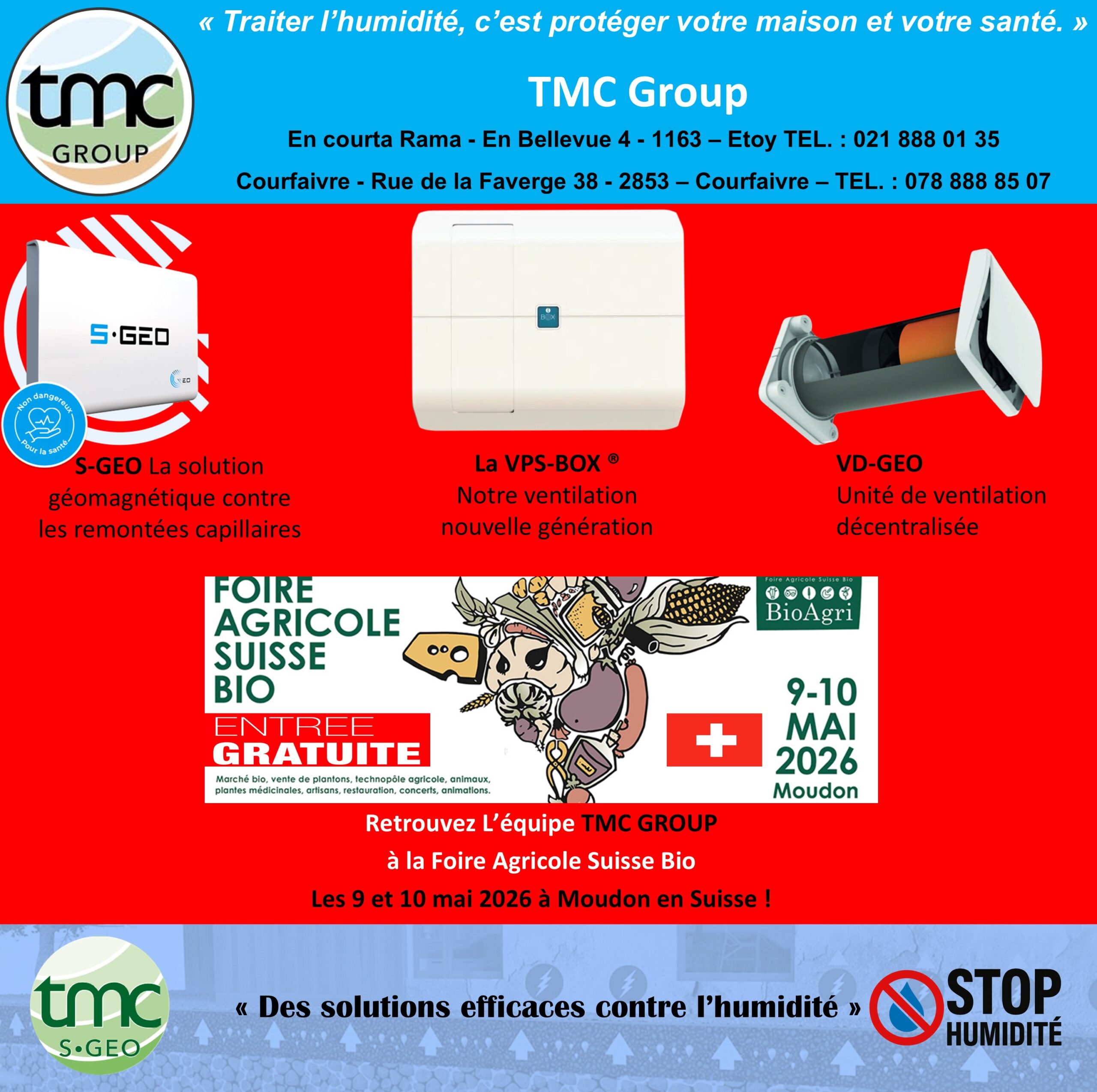 Traitement de l’humidité à la Foire Agricole Suisse Bio 2026 à Moudon – Solutions TMC Group